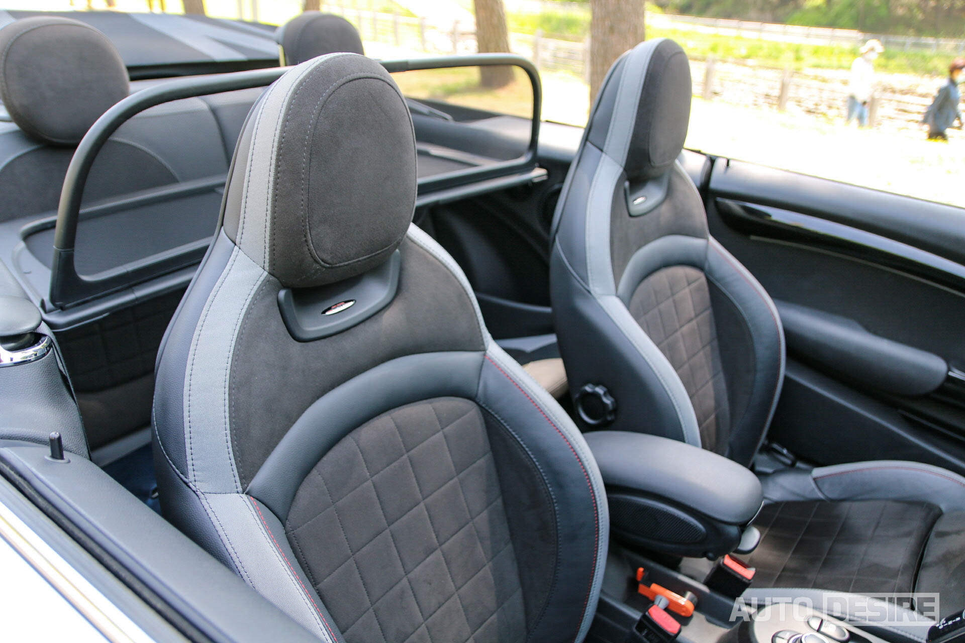 시트도 해치백 JCW와 동일하게 열선이 포함된 JCW 다이나미카 / 가죽 조합의 블랙 스포츠 버킷 시트를 적용, 일체형 헤드레스트와 높게 솟아있는 사이드볼스터, 다이나미카 재질로 마감한 쿠션과 등받이 부분으로 운전자의 쏠림, 미끄러짐을 방지해 스포츠 주행에서 몸을 안정적으로 잡는 데 도움을 준다.