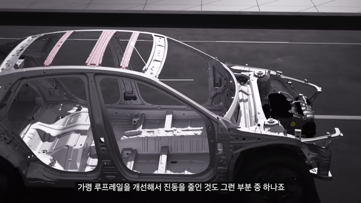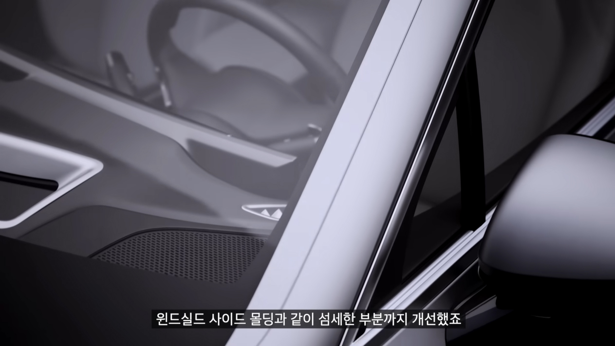 먼저 사이드 미러 형상을 일부 수정하고, 도어 실링과 윈드실드 사이드 몰딩 개선을 통해 윈드 노이즈를 줄였으며, 루프레일 개선을 포함한 플랫폼 일주 수정을 통해 노면 소음과 진동도 줄였다.