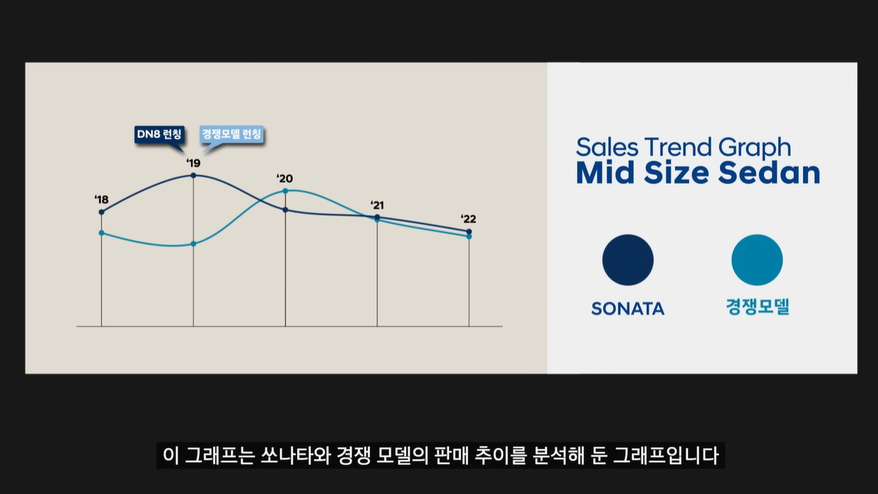 8세대 쏘나타(DN8)이 2019년에 출시된 이후 쏘나타의 판매량 감소와 함께 쏘나타가 단종될 것이라는 루머가 돈 적이 있었다. 절대적인 판매량과 비율에서 감소한 것은 사실이기는 하지만, 경쟁 모델과 판매 추이 비교 그래프를 살펴보면 상세한 내용을 알 수 있다. 2019년 하반기 경쟁 모델 신차 출시와 함께 2020년 이후 반도체 이슈가 겹치면서 쏘나타의 판매가 주춤했던 것도 사실이지만, 2021년부터는 경쟁 모델의 신차 효과가 감소했고, 쏘나타 역시 상품성 개선을 통해 판매량을 다시 역전시키게 되었다.