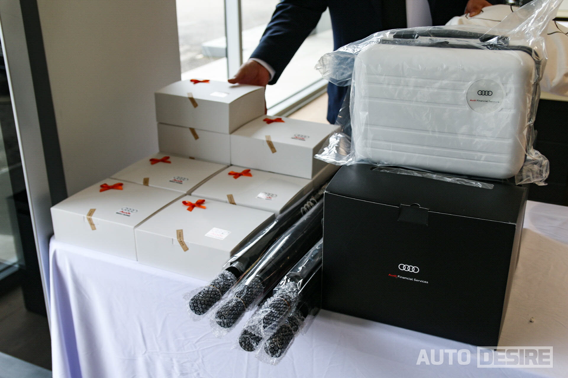 시승 행사 방문 고객들을 위한 아우디 에코백과 우산, 케이터링, 음료 등 선물들도 준비되었다.