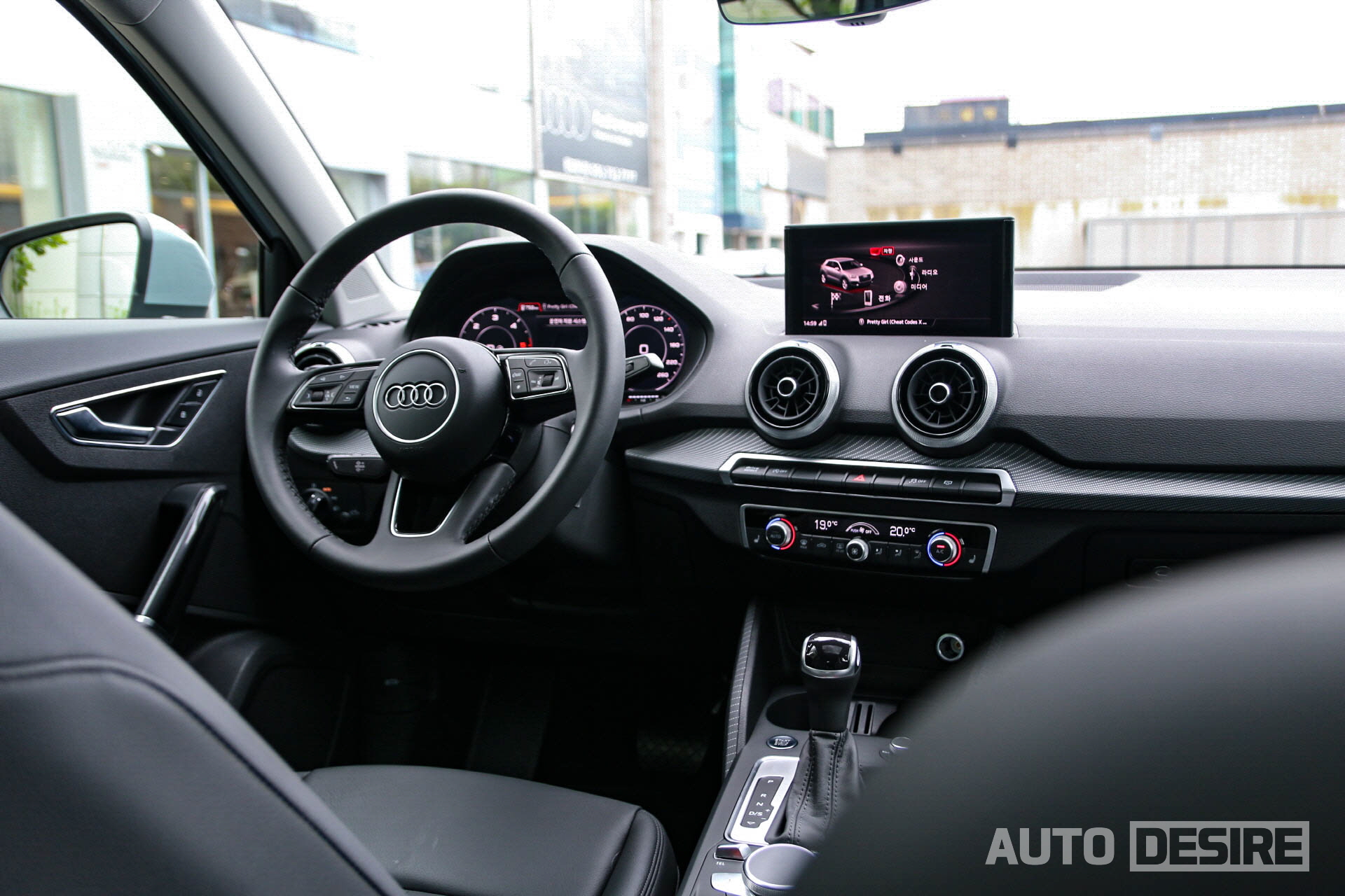 실내 공간에서도 아우디 차량들 특유의 와이드하고 깔끔한 분위기에, 써클형 타입 송풍구를 적용해 엔트리 라인업의 어울리는 액티브하고 젊은 느낌을 잘 살렸으며, 센터 디스플레이는 최상단에 위치해 운전자가 확인하기 좋은 곳에 위치했다. 볼륨감 있는 원형 혼커버와 날렵한 스포크가 적용된 3-스포크 가죽 스티어링 휠도 젊은 감각을 잘 살려준다. 여기에 사진에는 주간이라 확인이 어렵지만 크래시 패드 하단 부분과 센터 콘솔 측면으로 라이트 그래픽 인레이가 적용되어 야간에 화려한 분위기도 높여준다.
