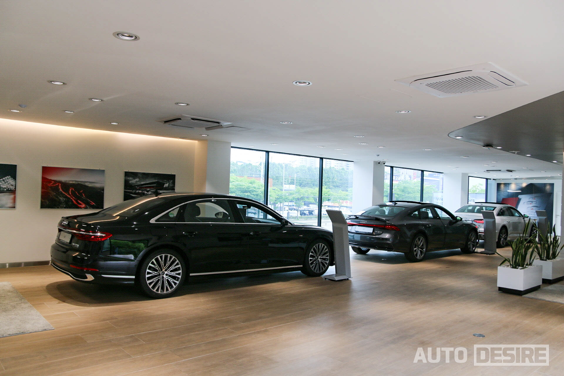 2층 공간에는 아우디의 대표 모델이자 꾸준한 판매를 이어나가고 있는 A6과 함께 날렵한 패스트백 스타일로 스포티하고 고급스러운 감각의 A7, 플래그십 세단인 A8까지 세단 라인업까지도 넓은 전시 공간을 통해 다양한 차종들을 살펴볼 수 있다.