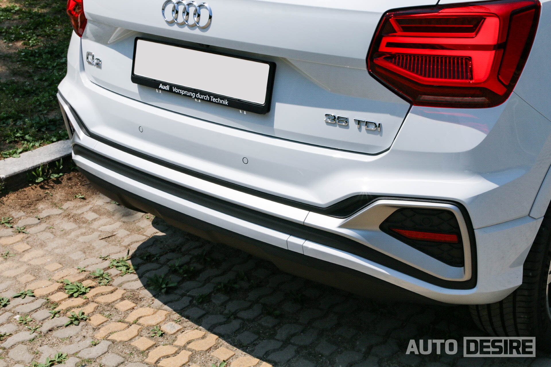 지난번 시승했던 기본형 Q2 35TDI와 비교해, Q2 35TDI 프리미엄 모델은 더 상위 트림으로서 한층 더 고급스럽고 세련된 느낌을 주는 S-line 패키지가 더해졌다. 커다란 싱글 프레임 라디에이터 그릴과 엣지가 살아있는 바디 실루엣과 캐릭터 라인, 존재감을 더 높여주는 LED 매트릭스 헤드램프와 주간주행등 그래픽, 다이내믹 턴 시그널은 기본. S라인 패키지를 통해 범퍼 하단과 도어실, 휠하우스 라인까지 바디 컬러 클래딩으로 도시적이고 세련미를 더 올렸으며 에어벤트 라인을 더 살려주는 범퍼 라인으로 스포티한 감각까지 더 높였다.