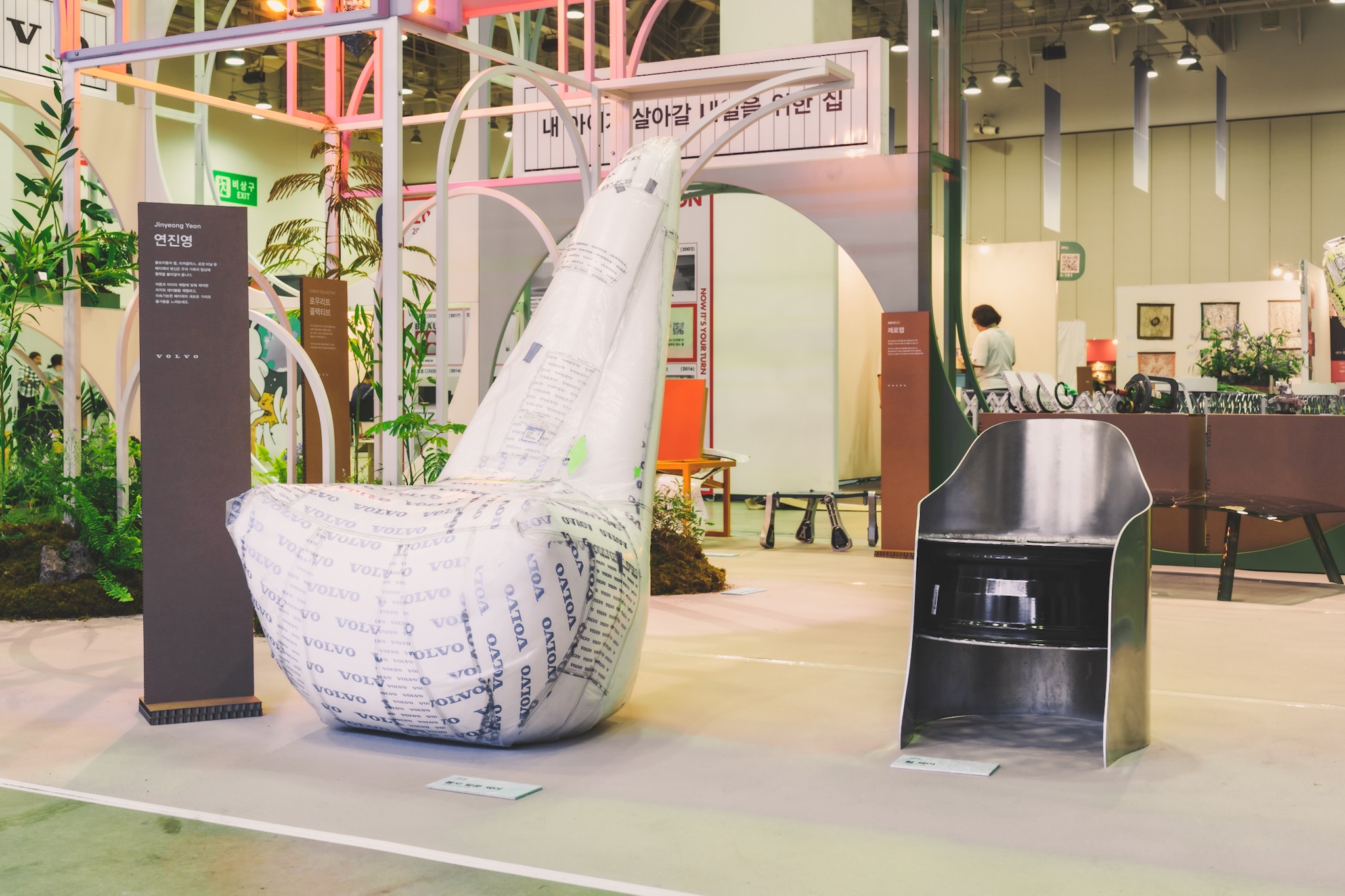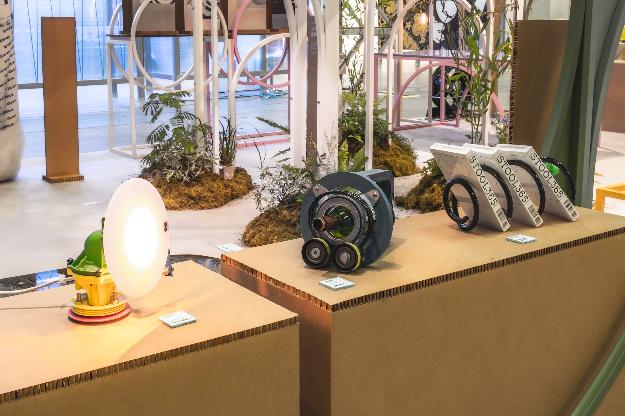 브레이크 디스크, 파이프, 코일 스프링 등의 부품은 북스탠드, 연필꽂이, 와인스탠드, 문진 같은 테이블 소품을 비롯해 소파와 스탠드형 선반, 7가지 조명 오브제로 재탄생했고, 휠과 폐 비닐로 제작한 어린이 및 가족을 위한 의자와 테이블, 파이프와 브레이크 디스크, 기타 플라스틱을 활용한 조명, 세라믹 소재와 폐 도자기로 연출한 정원 등도 현장에서 만나볼 수 있다.