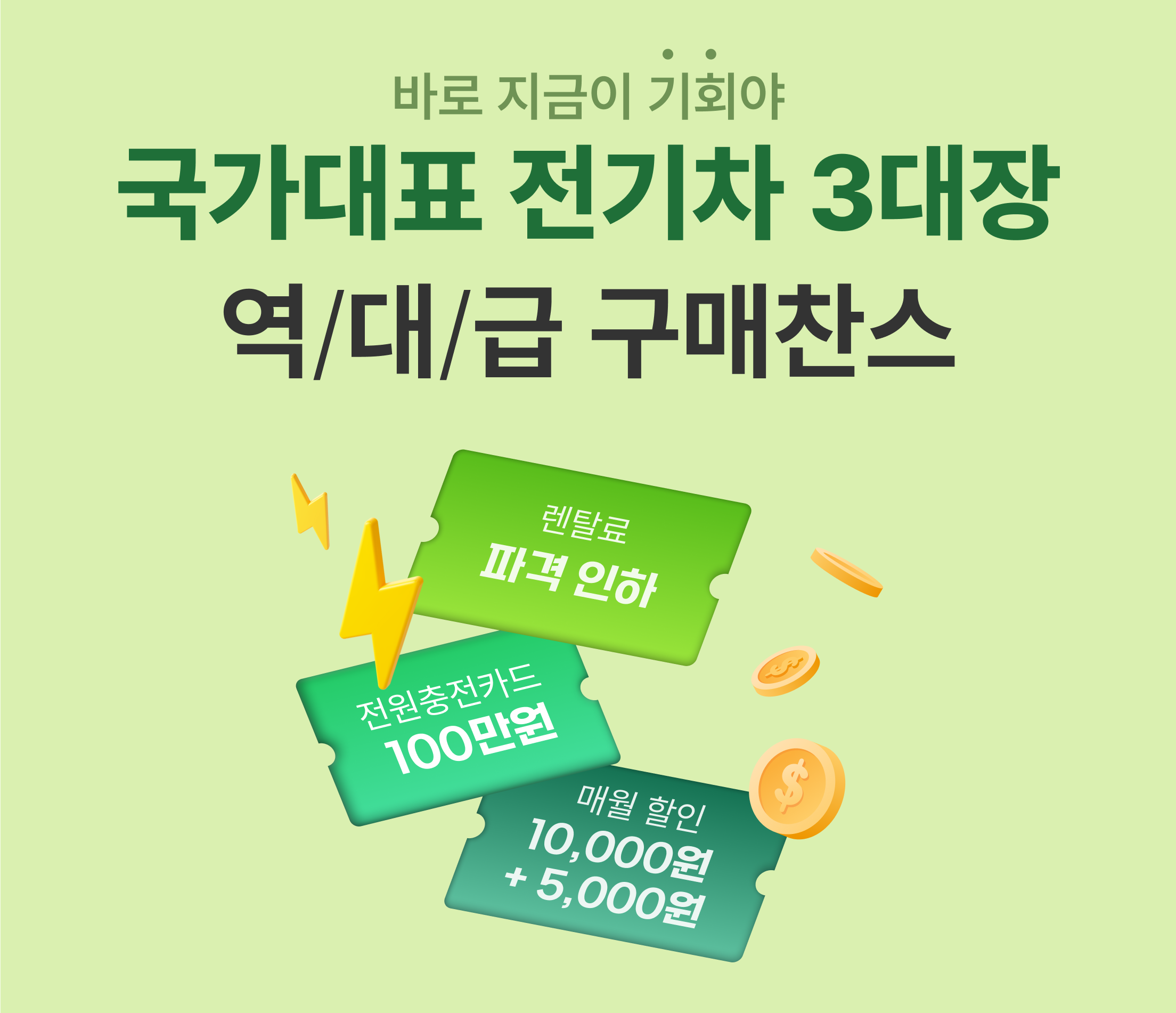 많은 자동차 제조사에서 다양한 전기차를 선보이고 있고, 국산 전기차도 선택지가 많아진 만큼! 어떤 전기차를 어떻게 구매하면 좋을지 고민하고 있는 전기차 예비 고객들을 위해 추천 차량과 출고는 빠르게, 또 초기 부담 비용 덜고 편리하게 이용할 수 있는 방법에 대해 소개하려고 한다.