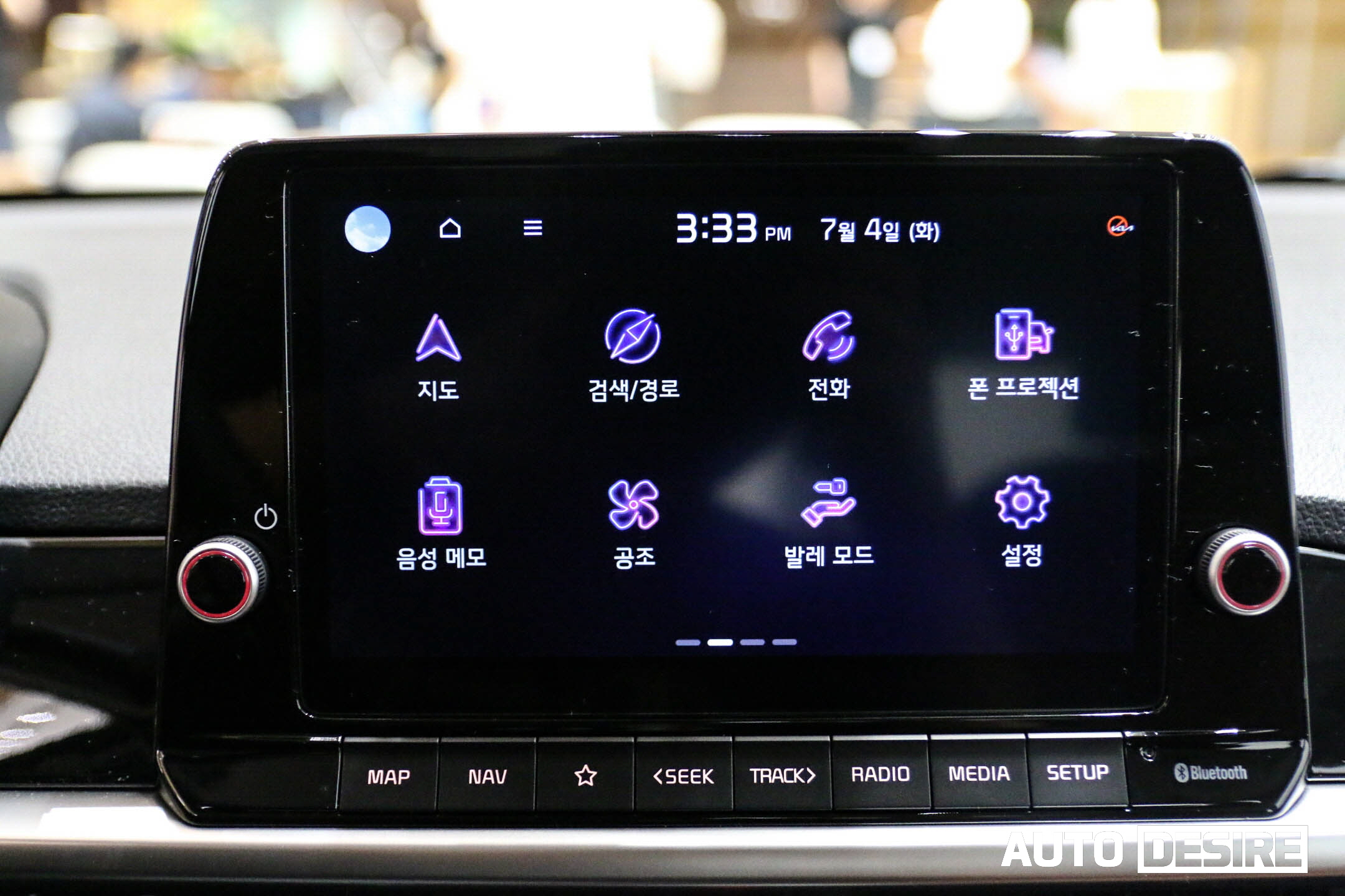 또 8인치 디스플레이 오디오와 후방 모니터, 락 폴딩 사이드 미러, 1열 C 타입 USB 충전 포트를 전 트림에 기본 적용해 편의성을 높였다. 8인치 내비게이션 사양의 경우 디스플레이 사이즈는 기존과 동일하지만, 음성 인식 지원을 통해 공조 기능도 음성으로 제어가 가능하고 The 2022 모닝에서 추가된 기아 커넥트 원격 제어로 스마트폰 어플을 통해 공조 제어와 도어 잠금, 차량 상태 확인, 목적지 전송 등 기능도 사용할 수 있다.
