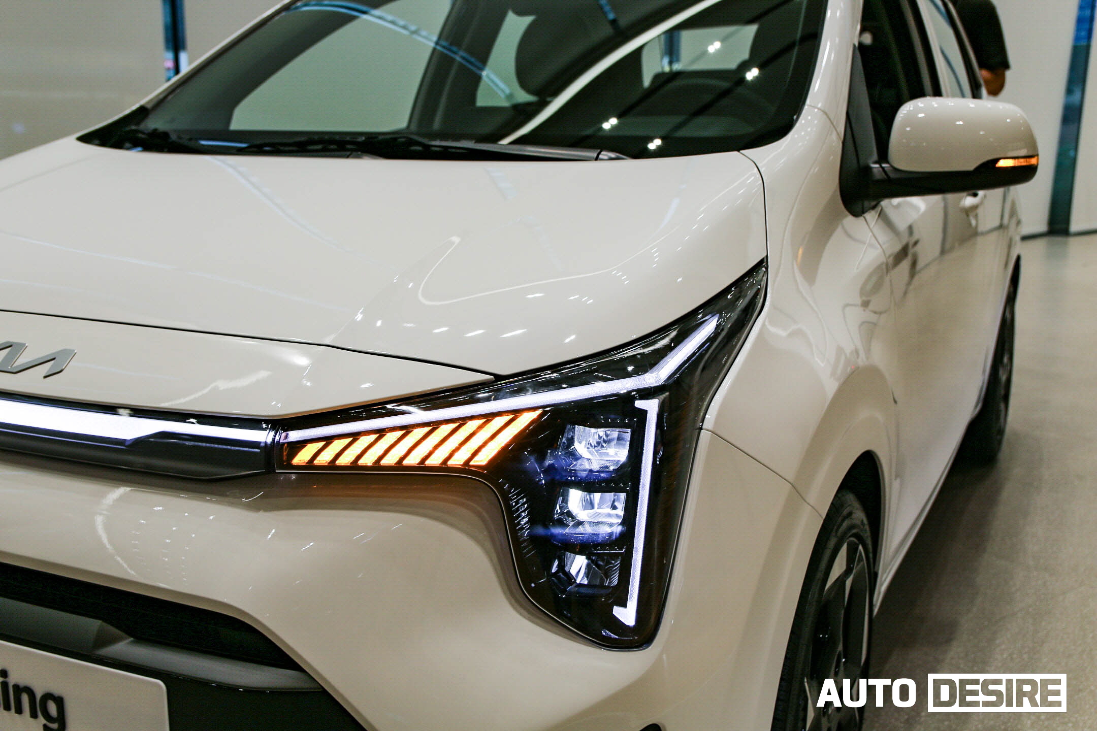 LED 주간 주행등은 기아의 다른 신모델들처럼 '스타맵 시그니처 라이팅'을 구현, 수직형 헤드램프를 따라 오르다 다시 수평으로 차량 좌우를 길게 가로지르는 형태로 와이드한 인상을 주며, 국산 경차 중에서는 동급 최초로 LED 헤드램프와 LED 전면 방향지시등을 적용해(스타일 패키지 옵션 선택 시) 시인성을 개선하고 고급감을 높였다. 육각 형태로 와이드하게 자리 잡은 프런트 그릴과 날렵하게 다듬은 에어커튼 디자인이 헤드램프와 자연스럽게 라인이 이어져 일체감 있고 역동적인 느낌으로 완성되었다.