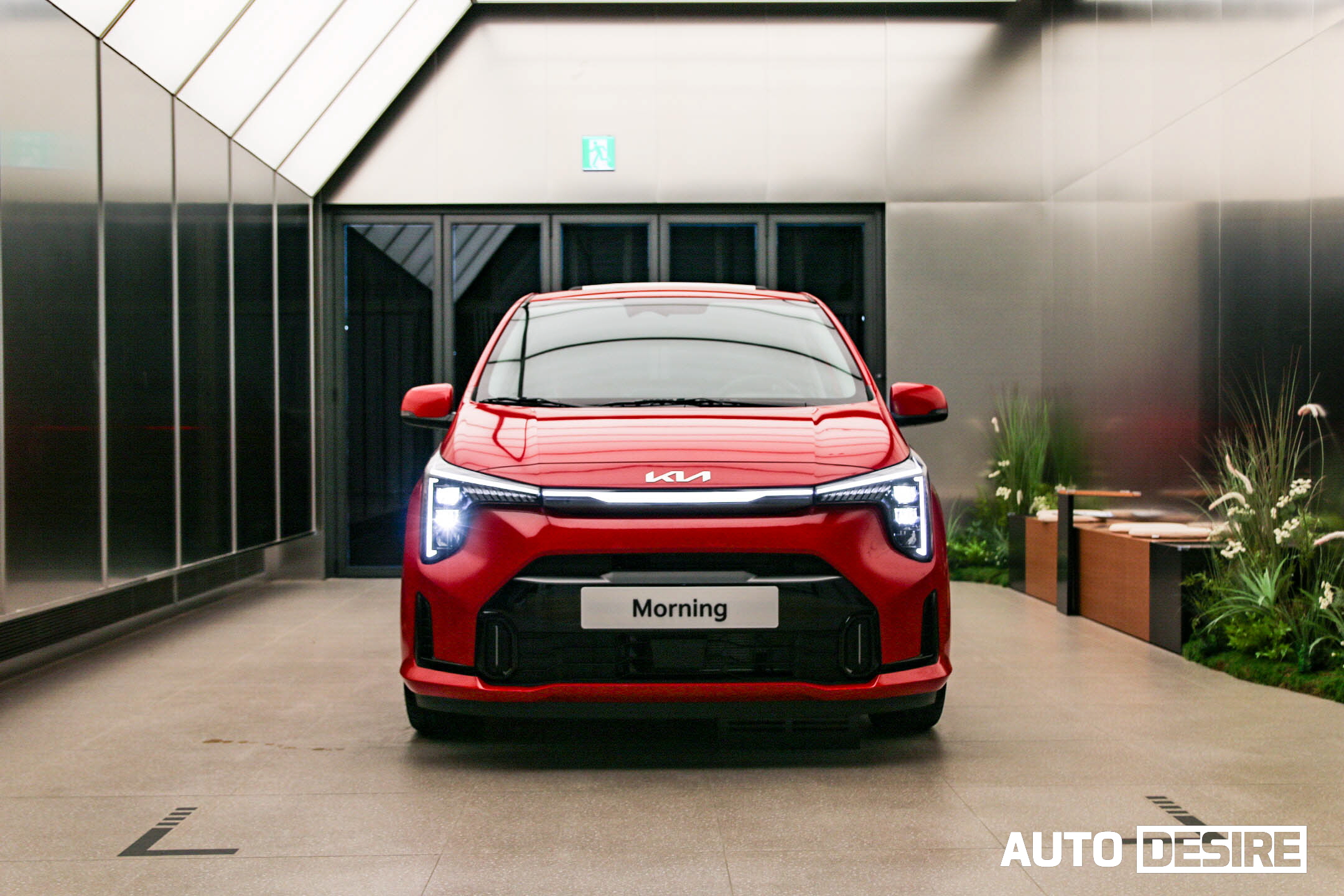기아의 최신 디자인 철학 '오퍼짓 유나이티드'를 반영해 기존 모닝과 완전히 다르게 풀체인지 급으로 달라진 전후면부 외관 디자인은 더 뉴 셀토스, EV9 등과 흡사한 듯 모닝의 비율에 맞게 스포티한 감각으로 잘 다듬었고, 기존의 모닝이 귀여운 듯 당찬 인상을 가지고 있던 것에 반해 더 뉴 모닝은 하이테크하고 미래적인 감각을 강조한 모습이다.