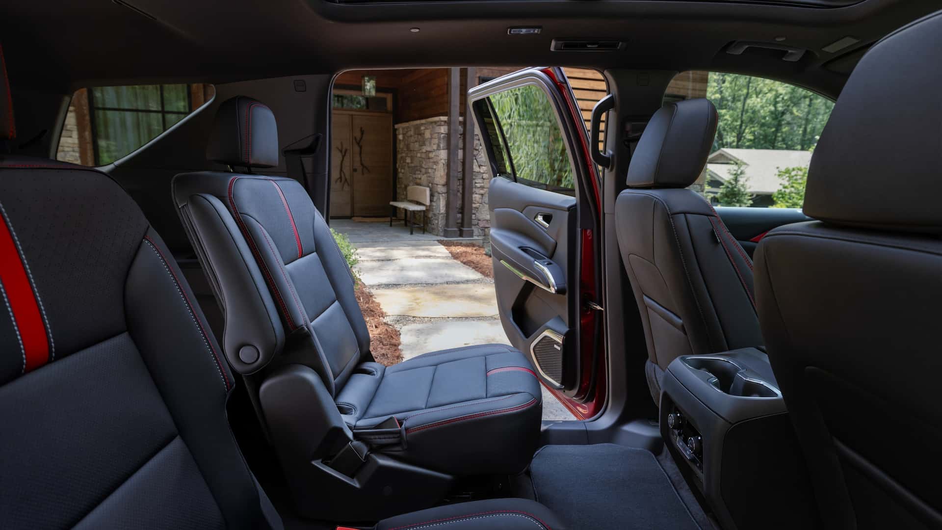 투박하고 올드한 느낌이 강했던 전 세대 트래버스와 비교하면 완전히 다른 차라고 봐도 좋을 정도로 확 달라진 인테리어는 수평형 송풍구와 디스플레이 형태, 스티어링 휠 형상 등 트랙스 크로스오버, 트레일 블레이저의 인테리어와 유사성을 띠면서도 윗급 모델로서 한층 더 높은 수준의 사양을 적용한 모습이다.