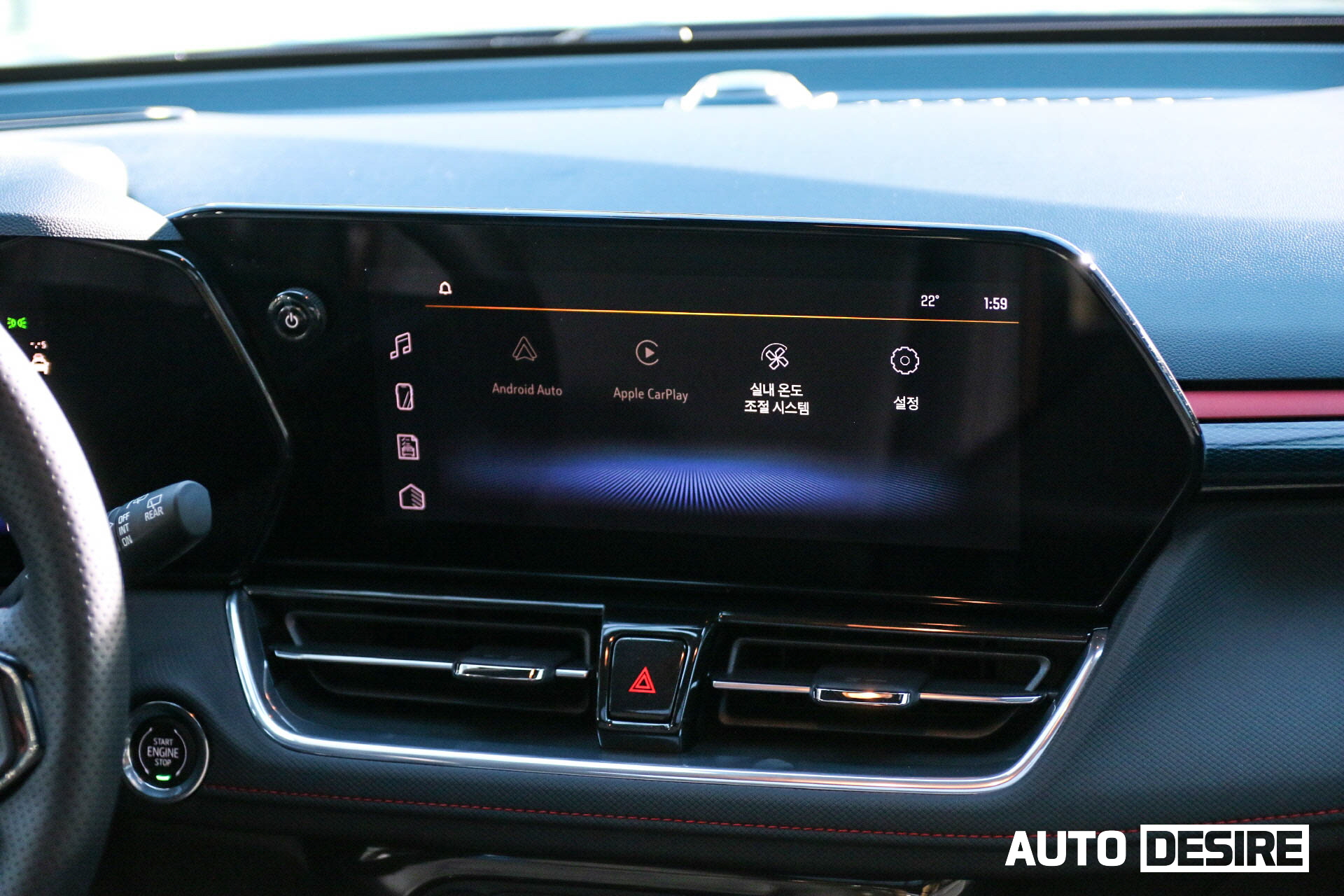 운전석의 디지털 8인치 컬러 클러스터는 트랙스 크로스오버와 동일한 그래픽, UI 구성을 가진 것으로 보이고, 11인치 컬러 터치스크린을 적용해 더 넓은 화면으로 편하게 조작할 수 있는 인포테인먼트 시스템에서는 기본으로 무선 안드로이드 오토와 애플 카플레이가 적용되었고, 오디오 시스템은 BOSE 프리미엄 7 스피커가 적용된다. 디스플레이는 운전석을 향하도록 되어 있어 시선 체크 및 조작하기도 편리하고, 송풍구 디자인과 위치 변경에 따라 비상등 위치도 중앙으로 옮겨와 조작성도 더 개선되었다.