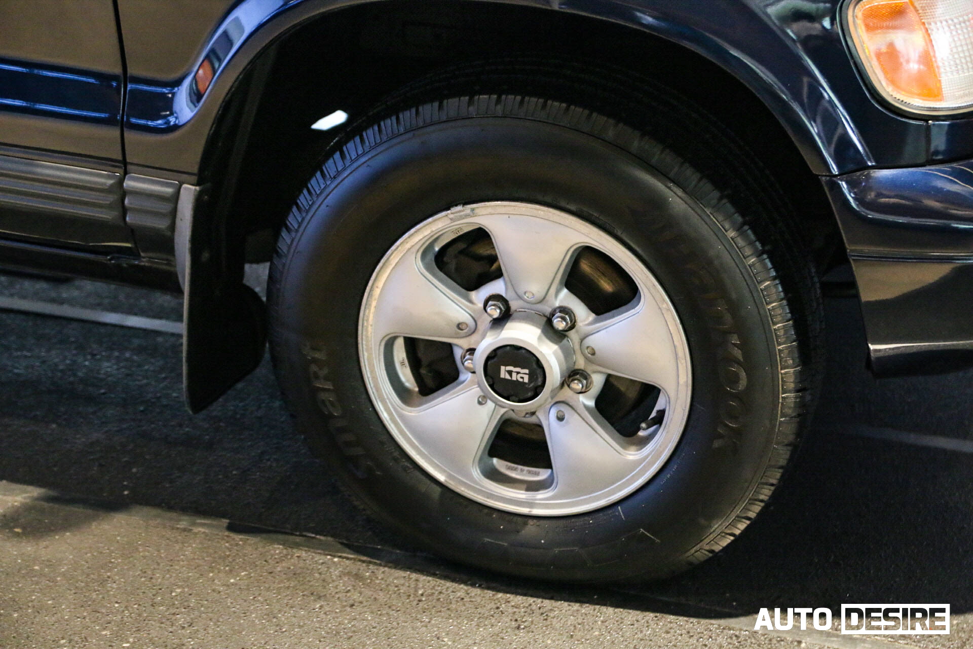 이런 도심형 감각을 내세운 컴팩트 SUV지만 그래도 SUV는 SUV. 여유 공간이 많이 남는 휠 하우스와 머드 가드, 별도 거치대에 장착되어 있는 스페어타이어, 범퍼 하부에 달려있는 등화관제등. 바디온 프레임 타입의 차체는 도로 사정이 그리 좋지 못했고, 국가 안보 상황과 관련된 당시 90년대의 시대상을 엿볼 수 있는 부분이기도 하다.