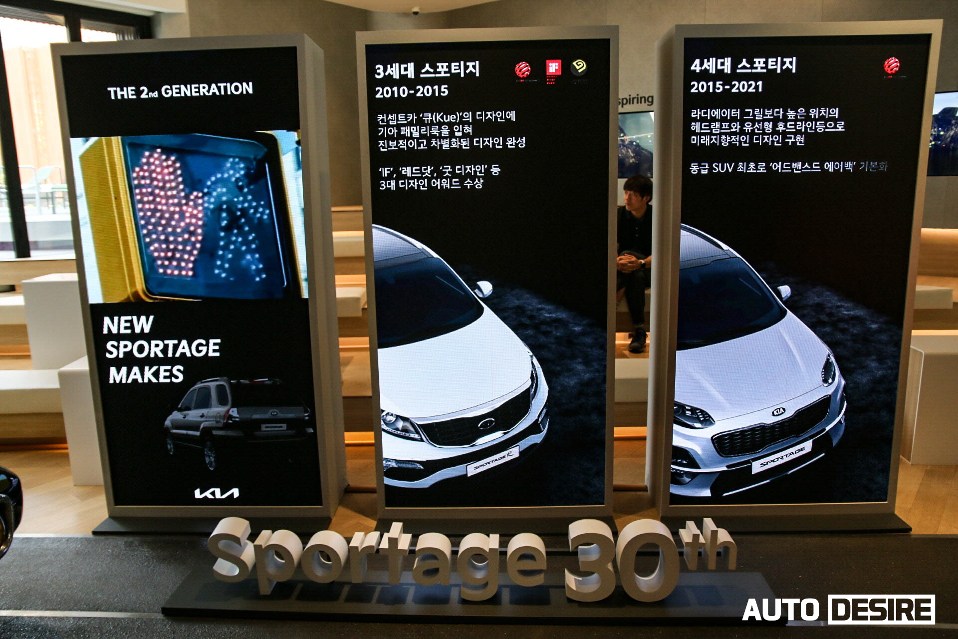 1세대에 이은 2세대부터 4세대까지도 전시차로 한자리에서 다 같이 만나봤다면 더 좋았겠지만, 이 아쉬움은 디지털 전시를 통해 달래고 있다. 다행(?)인 건 아직까지 3세대, 4세대 스포티지는 도로 위에서 만나볼 수 있고 2세대 역시 아직 현역으로 종종 달리는 모습을 만날 수 있다는 점. 그동안 일상 속에서, 도로 위에서 쭉 만나왔던 차량이라 그저 익숙하게만 느껴졌지만, 그 익숙함에는 세대를 거듭해오면서 국내외 시장에서의 높은 판매량과 함께 디자인상 수상, 동급 최고 수준의 사양으로 업그레이드를 거쳐오면서 고객들을 만족시키기 위한 많은 노력이 있었다는 걸 전해주고 있다.