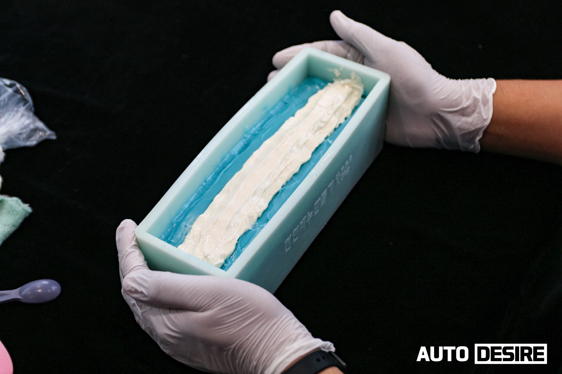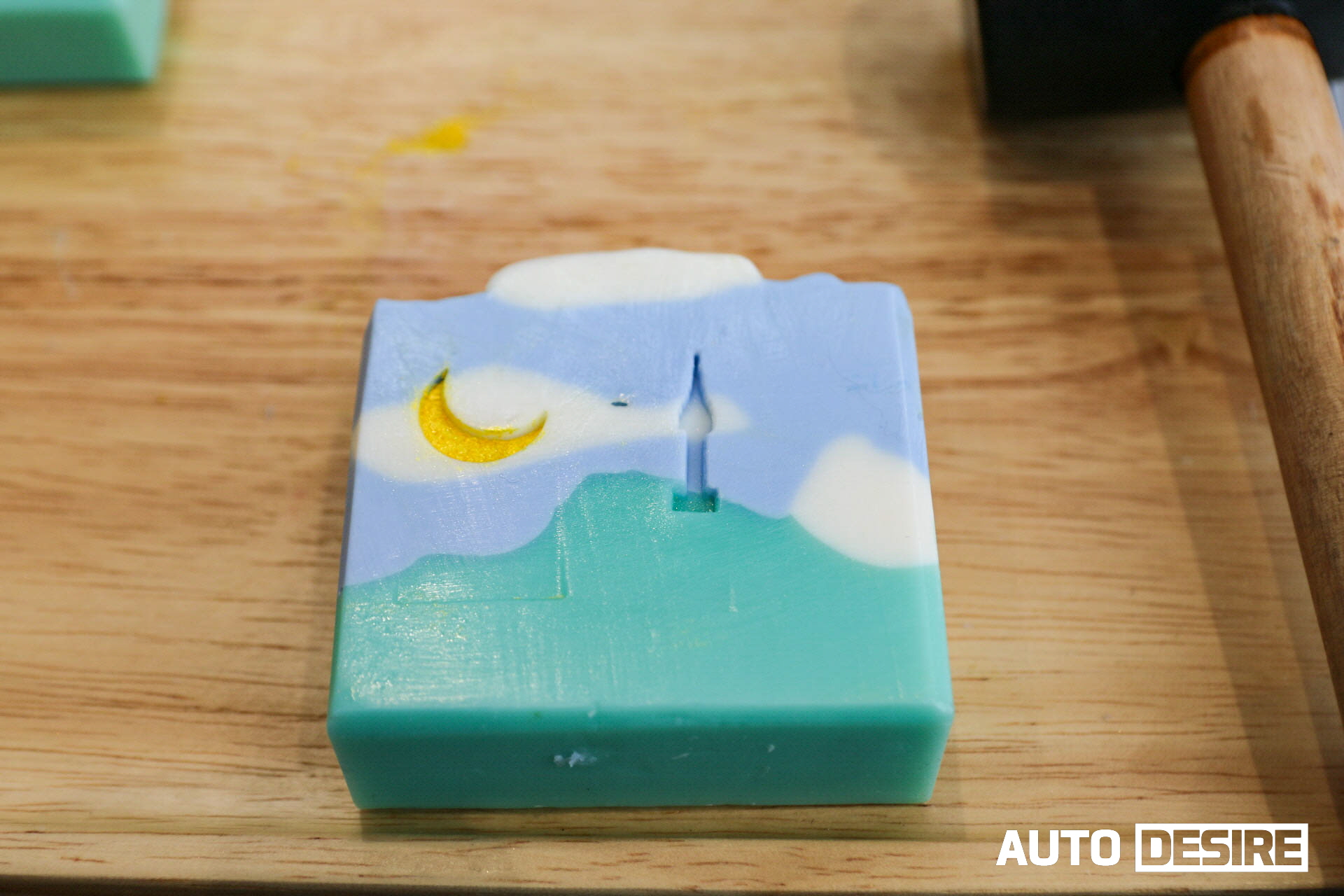 그럼 여기서 친환경 비누 만들기 체험이 끝~?이 아니라, 열대 느낌을 낼 수 있는 야자수와 친숙한 느낌을 주는 서울 타워 모양, 밤하늘의 초승달과 VOLVO 레터링을 표현할 수 있는 다양한 몰드를 고무 망치로 찍어 나만의 원하는 모양의 비누를 만들 수 있었다.