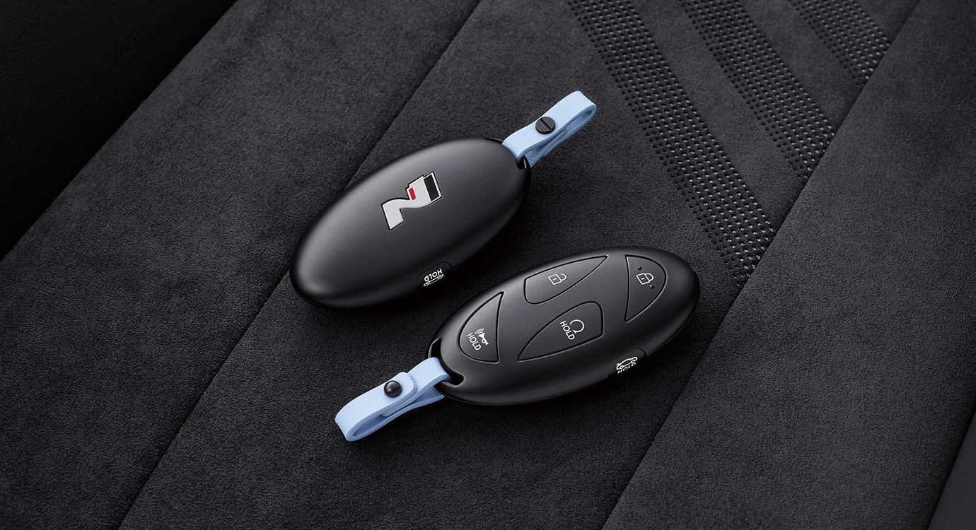 스마트키의 디자인의 H 이니셜을 형상화한 현대 신규 스마트키를 블랙 컬러로 바꾸고 후면에는 N 브랜드 로고를 더했으며, 보조키 스트랩은 퍼포먼스 블루 색상을 적용해 N 브랜드에 맞게 손을 보았다.
