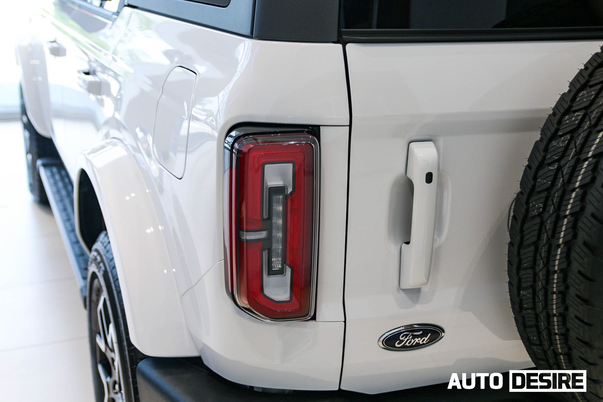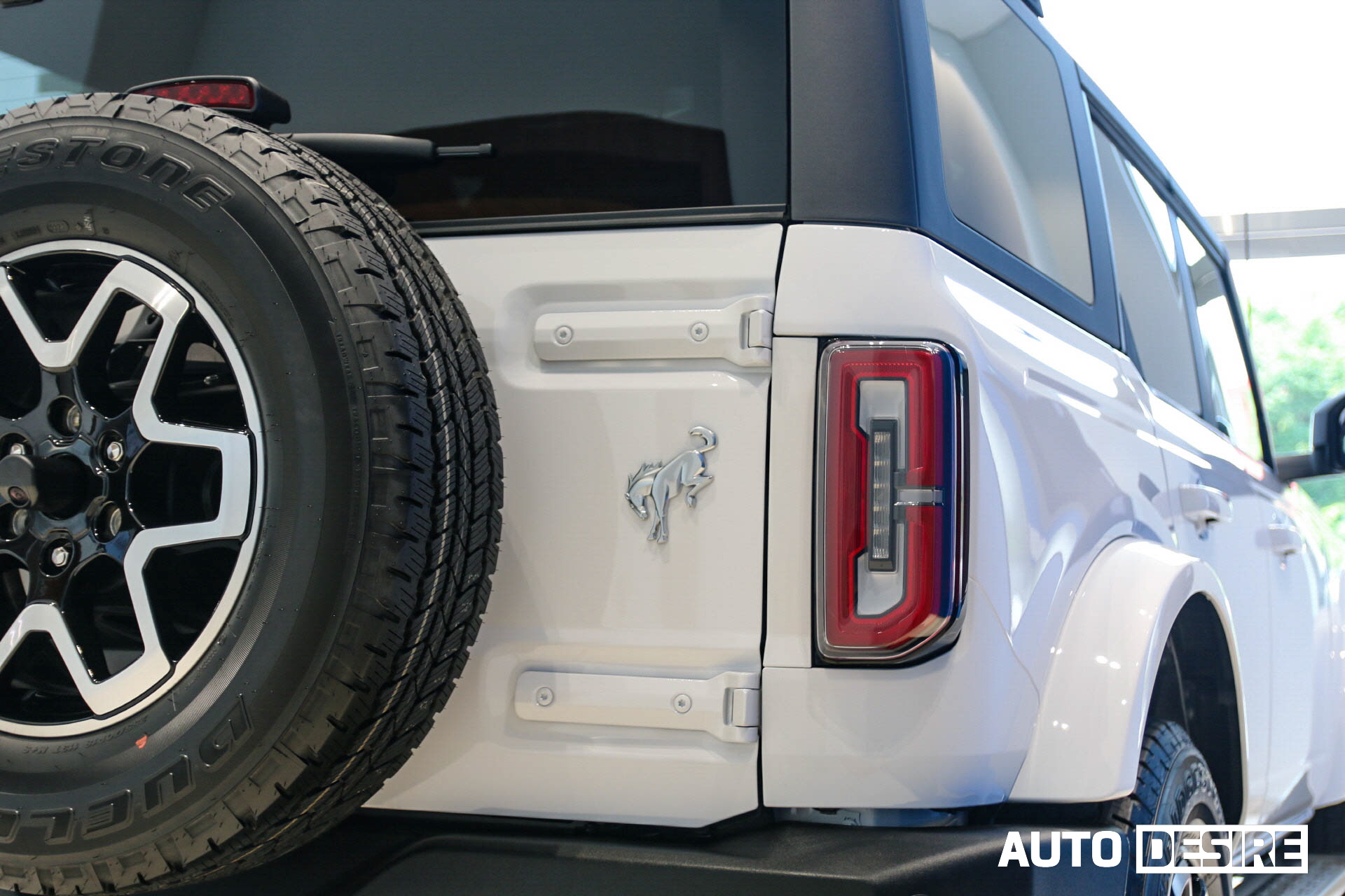 이는 탈착이 가능한 하드탑 루프와 함께 차량 후방에 노출되어 달려있는 스페어타이어도 마찬가지. 이런 투박한 느낌이 오히려 매력적인 후면부에서는 수직형 LED 헤드램프의 그래픽으로 디테일과 세련미를 더해주고, 후면 테일게이트 손잡이 아래에는 포드 엠블럼을 달았지만, 조수석 방향에는 야생마 엠블럼을 크게 박아 '브롱코' 브랜드가 가지는 헤리티지를 나타내준다.