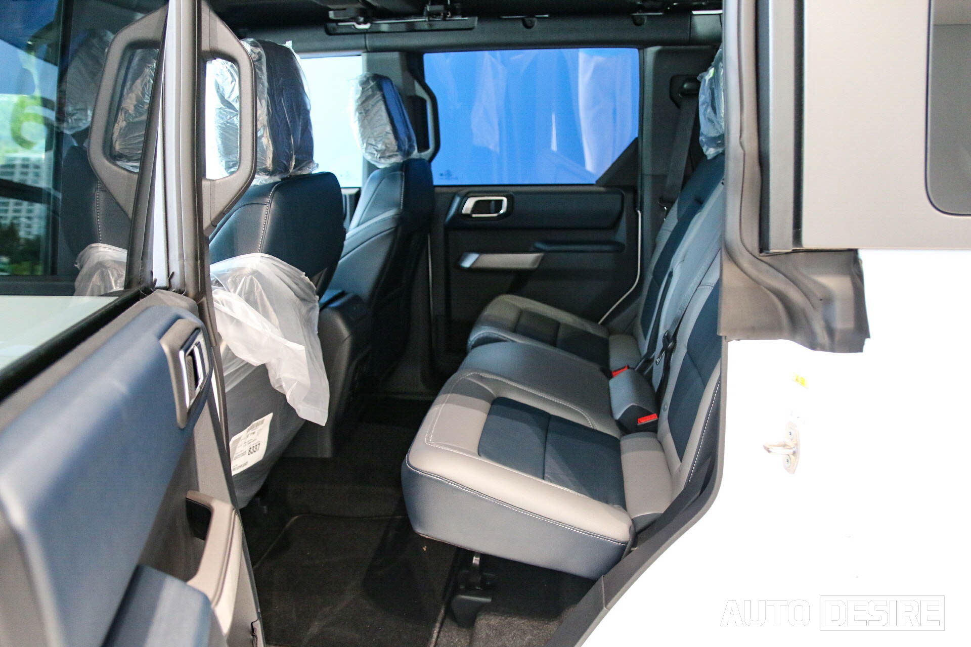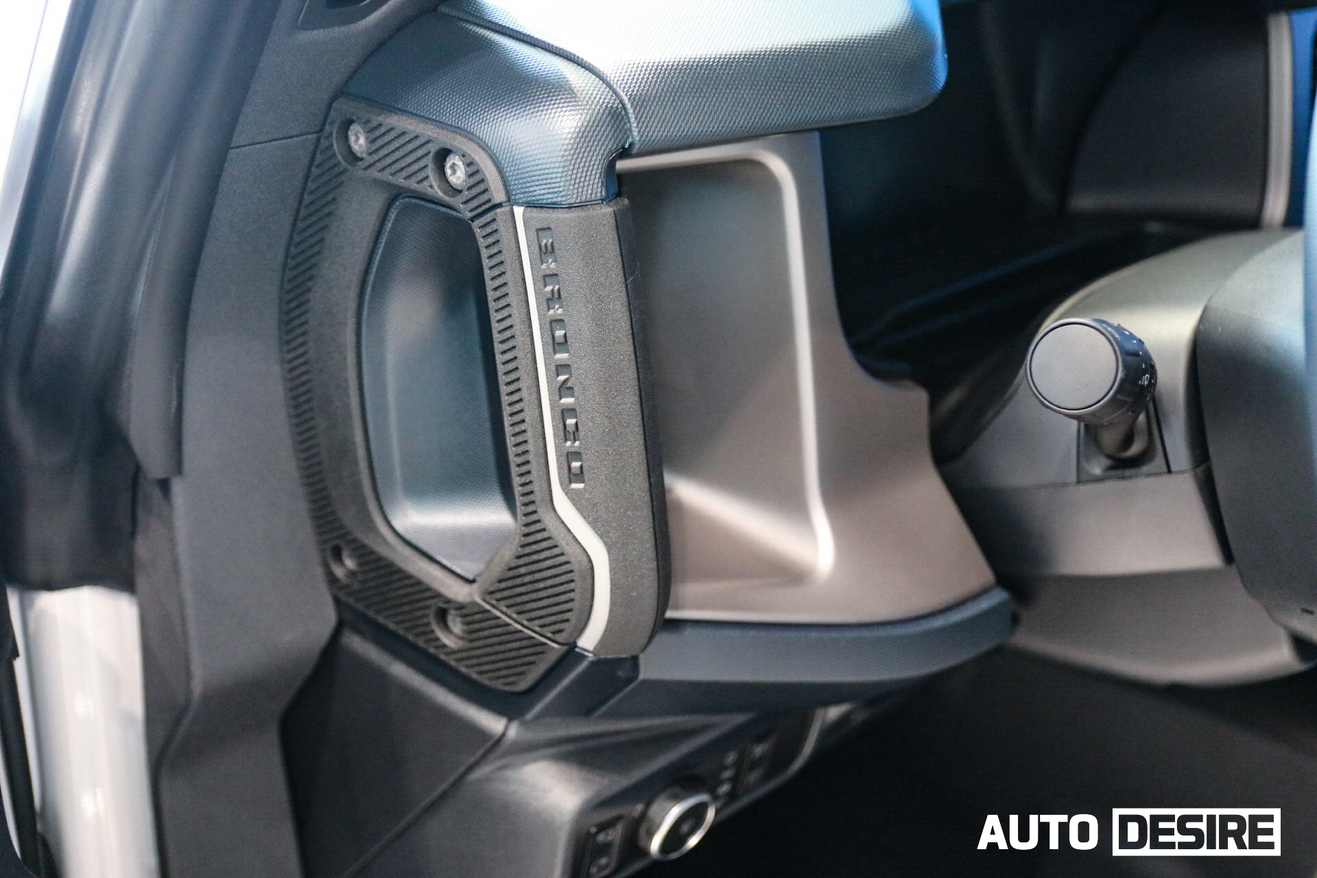입체감을 강하게 살린 스티어링 휠의 혼 커버, 큼직큼직한 디스플레이와 송풍구 사이즈, 각 버튼류 등 실내에서도 다소 투박한 감각이 남아있기도 하지만, 8인치 디지털 클러스터와 싱크 4 인포테인먼트 시스템이 적용된 12인치 터치스크린, 무선 안드로이드 오토와 애플 카플레이, 10스피커 뱅앤올룹슨 사운드 시스템, 360도 서라운드 뷰 카메라, 무선 충전 시스템, 1열 열선/파워 시트와 열선 스티어링 휠 등 데일리로 타기에도 불편하지 않도록 운전자와 탑승객을 위한 편의 사양도 브롱코에 풍부하게 준비되어 있다.