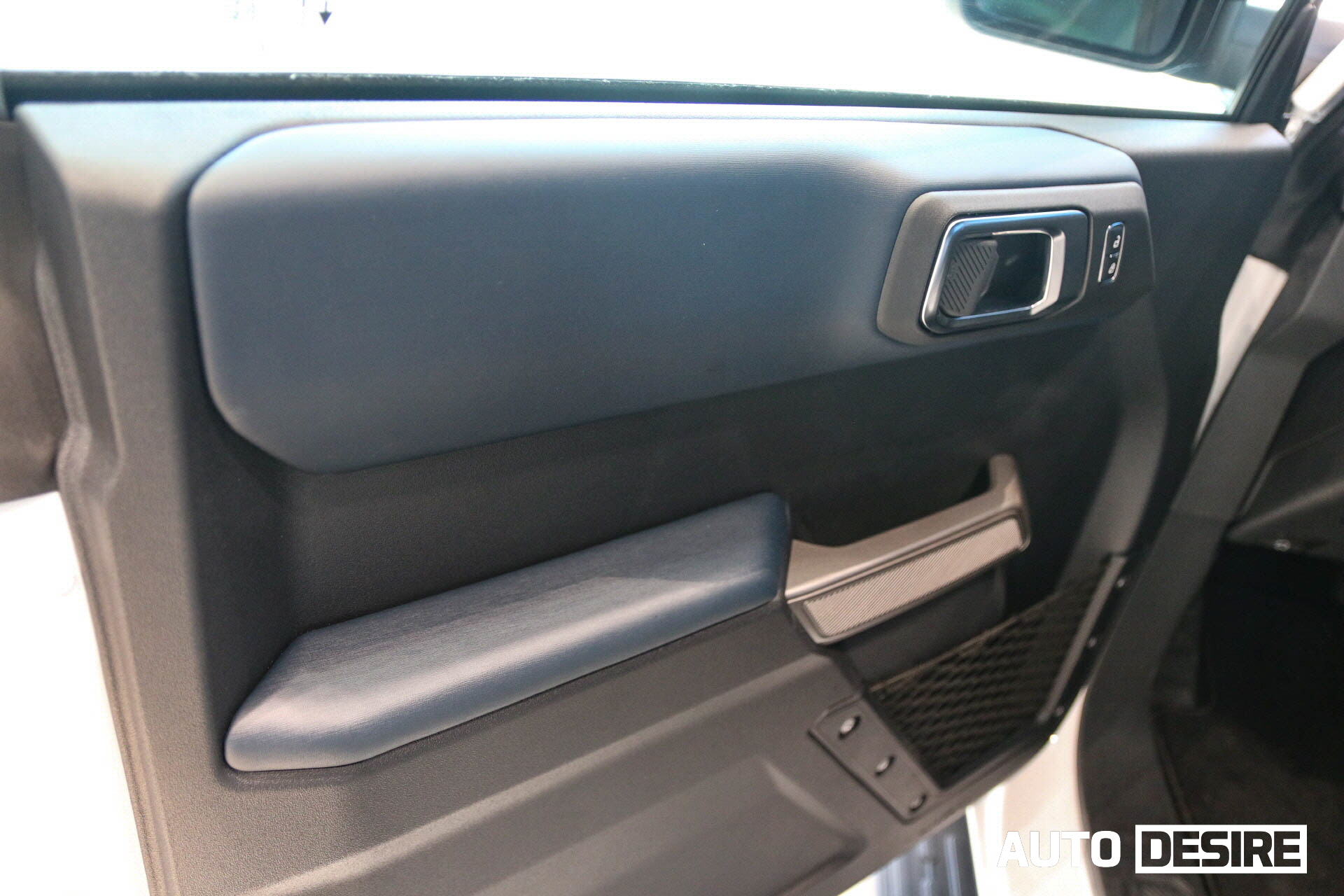 실내 역시 이전에 시승했던 차량의 블랙/브라운 투톤이 아닌 네이비/그레이 투톤 인테리어가 적용되어 있는데, 더 밝은 색상이라 조금 더 화사한 듯 채도가 강하지 않은 네이비/그레이 투톤이라 차분하면서도 세련된 분위기를 준다. 오프로드용 차량이지만 실내 색상은 도심에서 탈 차량으로도 분위기가 괜찮은 느낌. 시트 등받이에는 야생마 엠블럼 펀칭이 박혀있고, 크래시패드 좌우 끝부분의 그립에는 브롱코 영문 레터링을 적용했다. 도어 트림에도 네이비 가죽 마감을 더해 고급감을 더 높인 모습.