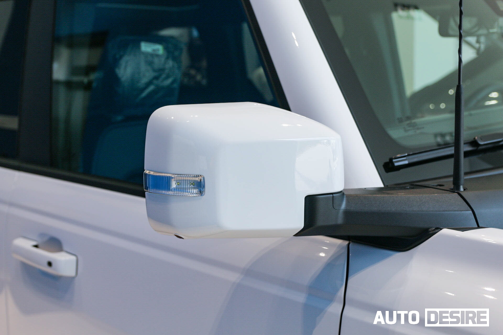 툭 튀어나와있는 오버 펜더가 박스형이라 다소 지루하고 밋밋해 보일 수 있는 차체 측면부를 더 탄탄하게 만들어주고, 도어를 떼어낸 상태에서도 측후방 시야 확보를 할 수 있도록 도어가 아닌 프런트 카울과 연결되어 부착되어 있는 사이드 미러, 짧은 앞뒤 오버행, 승하차를 편리하게 도와주는 오프로드 사이드 스텝까지 오프로드 SUV의 특징들을 외장 곳곳에서도 고스란히 확인할 수 있다.