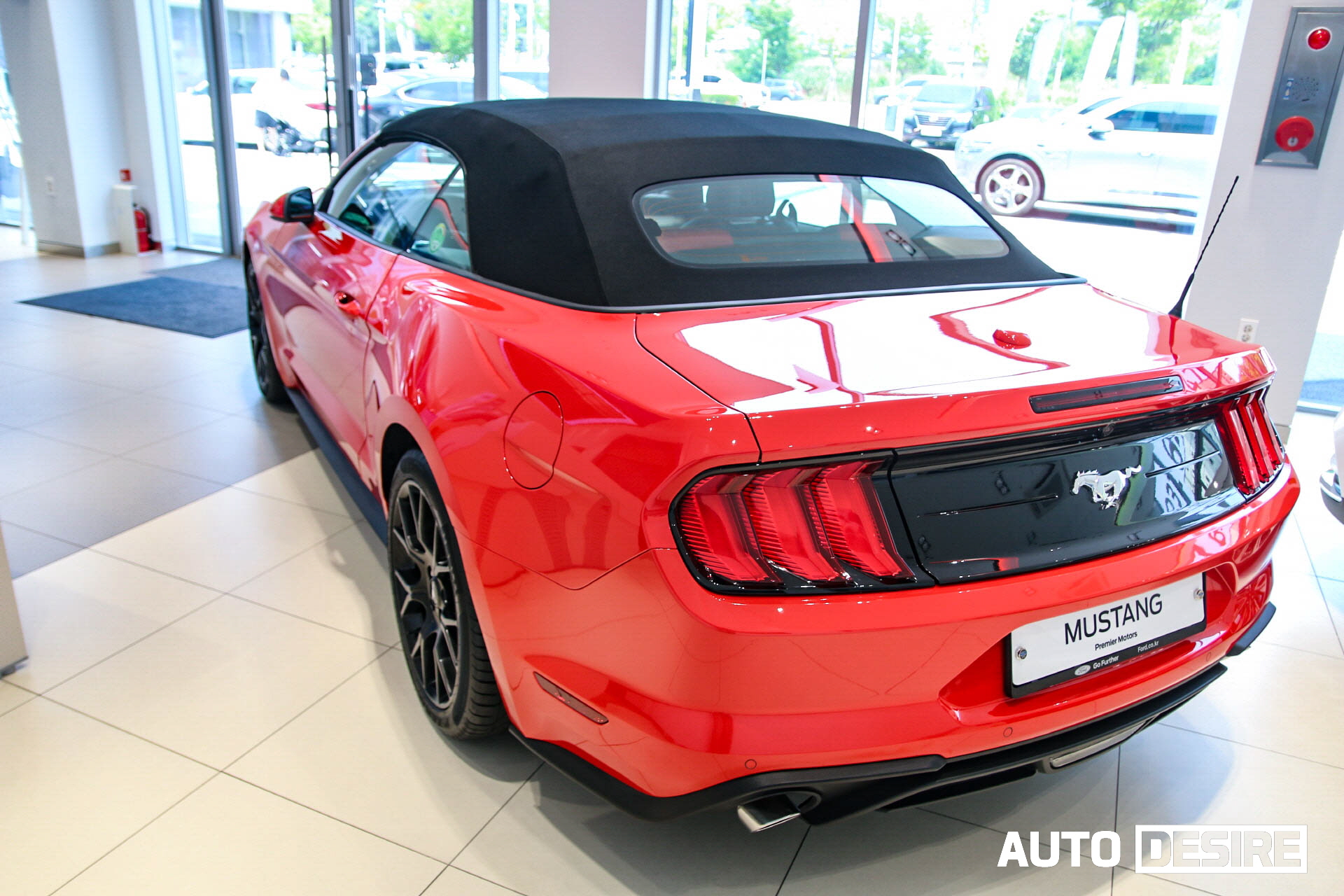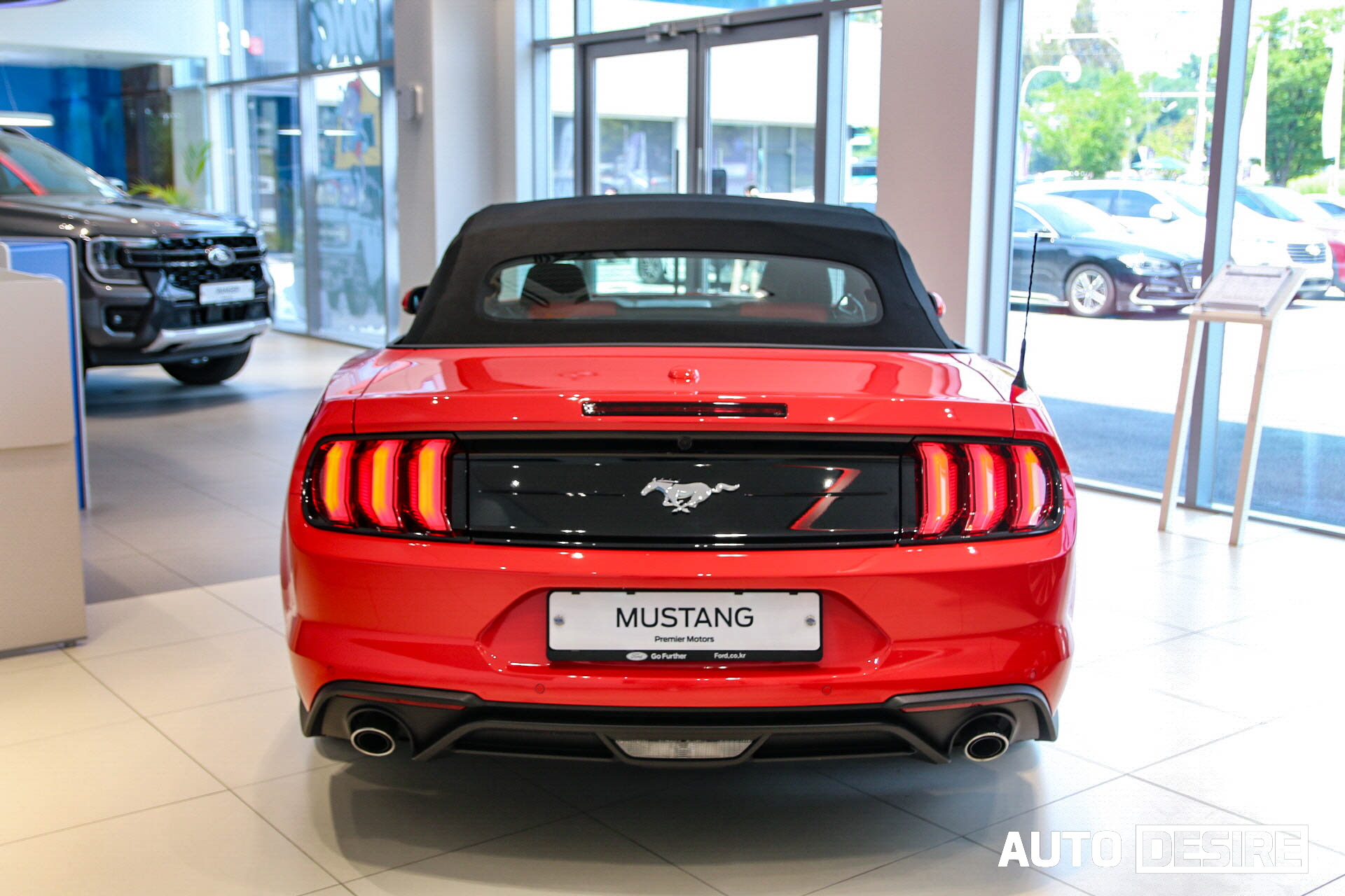 전시 차량은 2.3 에코부스트 컨버터블 모델로서 8기통 5.0 GT 모델에 비해서는 아무래도 출력, 주행 성능에 있어서 상대적으로 아쉽기는 하지만, 그래도 최고출력 291마력, 최대토크 44.9kgf.m으로 스포츠카로서 크게 부족하지 않고 어느 정도 경쾌한 주행이 가능한 출력을 발휘해 준다. 또 5.0 GT 모델 배기 배기량이 작아 연간 자동차세 부담도 훨씬 덜하고, 연비도 더 좋을 뿐 아니라, 파워 트레인을 제외한 사양에서는 큰 차이 없이 훨씬 저렴한 가격으로 구매가 가능하기 때문에 머스탱의 스타일과 감성을 합리적으로 만나고 싶은 분들에게는 2.3 에코부스트 모델이 오히려 더 매력적일 수도 있을 것 같다.