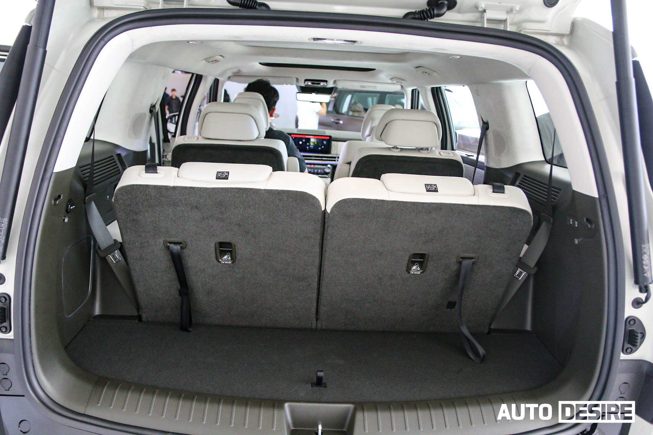 박시한 차체 디자인과 더 길어진 전장, 휠베이스 덕분에 더 넓어진 3열 공간도, 플로어가 높아서 앉았을 때 허벅지가 좀 떠있기는 하지만 헤드룸과 레그룸 모두 성인이 충분히 탑승할 수 있는 수준으로 확보되었고, 3열 승객을 위한 송풍구 및 USB 충전 포트, 컵홀더도 제공된다.