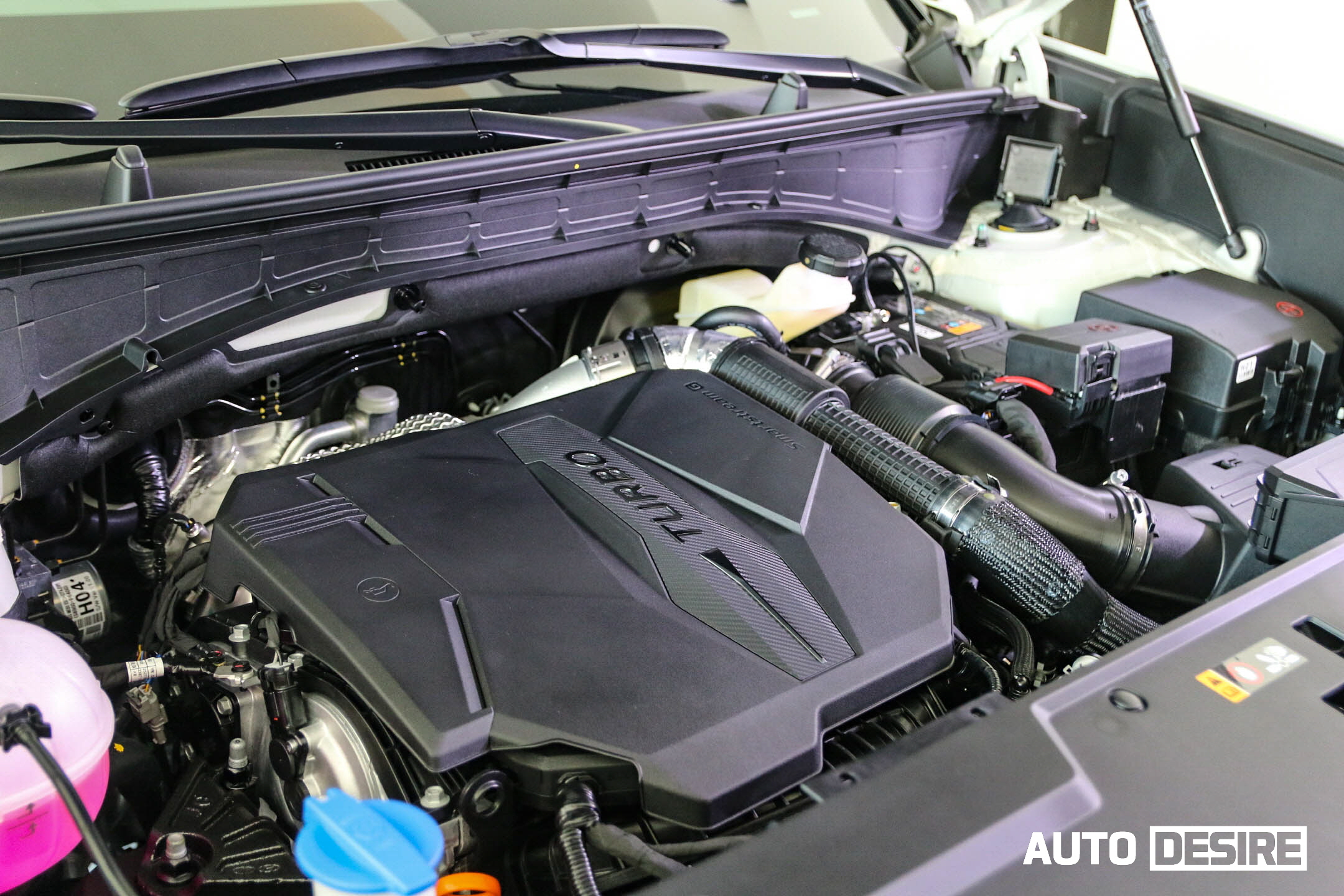 또 리어 램프가 이렇게 낮은 위치로 오게 된 이유에는 테일게이트 개방감을 높이기 위해 상당히 긴 전동 리프트를 장착해 간섭을 피하기 위한 이유도 있다고 한다. 방향지시등과 리어 리플렉터, 보조 램프는 수형형으로 범퍼에 위치해있고, 제일 아래의 후진등은 가이드 램프가 적용되었다. 머플러는 조수석 방향으로 싱글 팁으로 적용되었는데, 듀얼 머플러로 적용되었다면 전체적인 완성도가 더 높았을 것 같다.