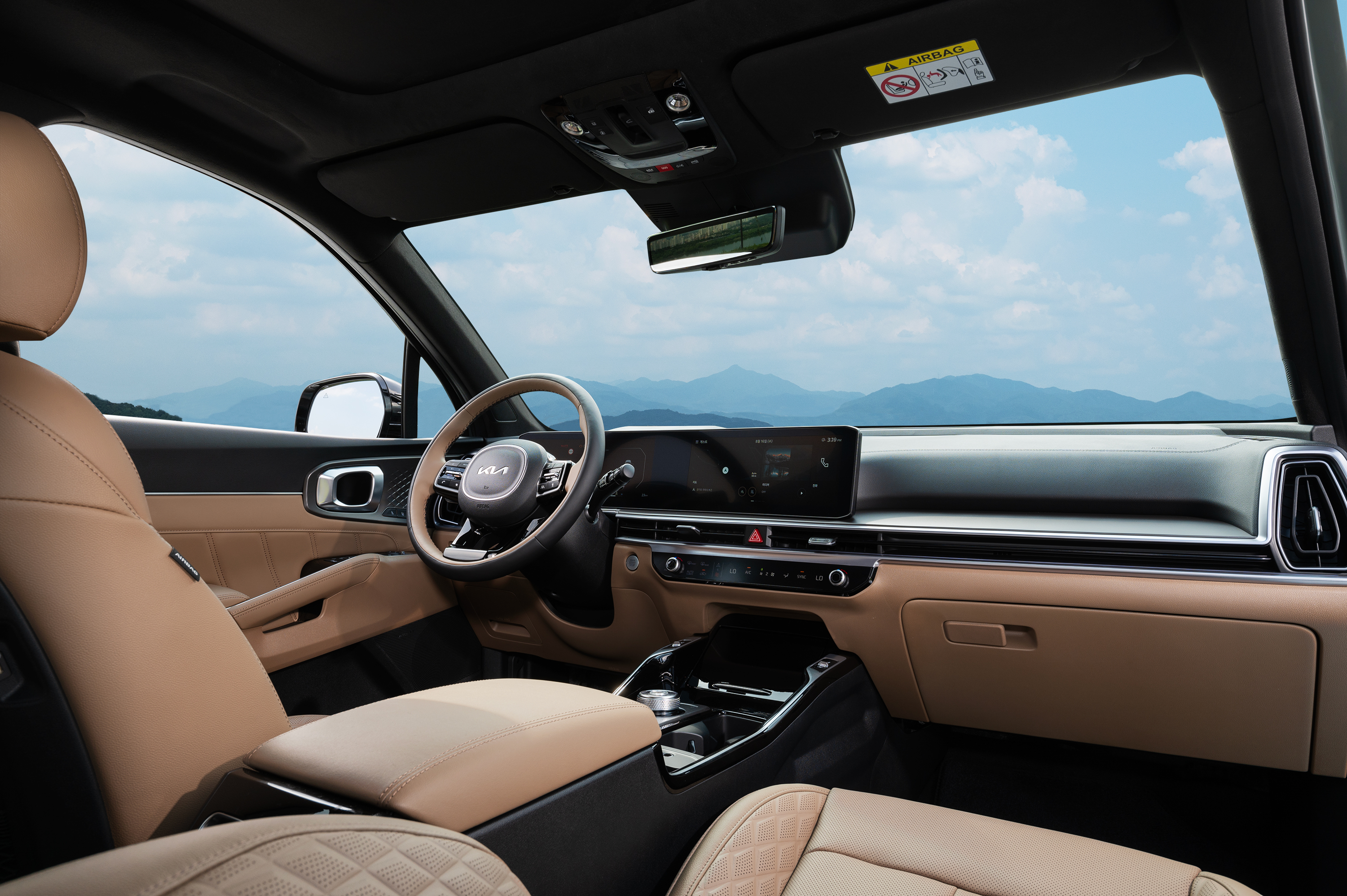 먼저 12.3인치 LCD 클러스터와 12.3인치 내비게이션 화면을 하나로 연결한 파노라믹 커브드 디스플레이와 차세대 인포테인먼트 시스템 ccNC를 적용해 주행 및 다양한 차량 관련 정보, 멀티미디어 기능들을 넓은 화면과 선명한 시인성으로 전달하며, 운전석과 조수석을 수평으로 길게 가로지르는 슬림한 송풍구 디자인과 함께 하단의 수평형 전환형 조작계를 적용해 심플하고 세련된 실내를 구현했다.