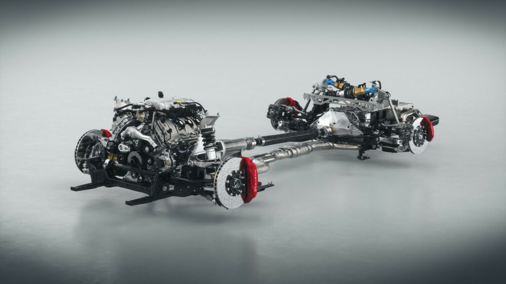 이 외에도 유압식 듀얼 스프링 레이트 및 높이 조절 기능, 어댑티브 스풀 댐퍼 기술이 적용된 세미 액티브 서스펜션을 장착, 댐퍼 스트로크와 암 사이즈를 단축시킨 프런트 서스펜션과 후륜에는 일체형 링크 푸시로드 구조로 된 서스펜션이 적용되어 뛰어난 강성과 함께 일반 머스탱과는 상당한 수준으로 다른 퍼포먼스를 발휘할 수 있다.