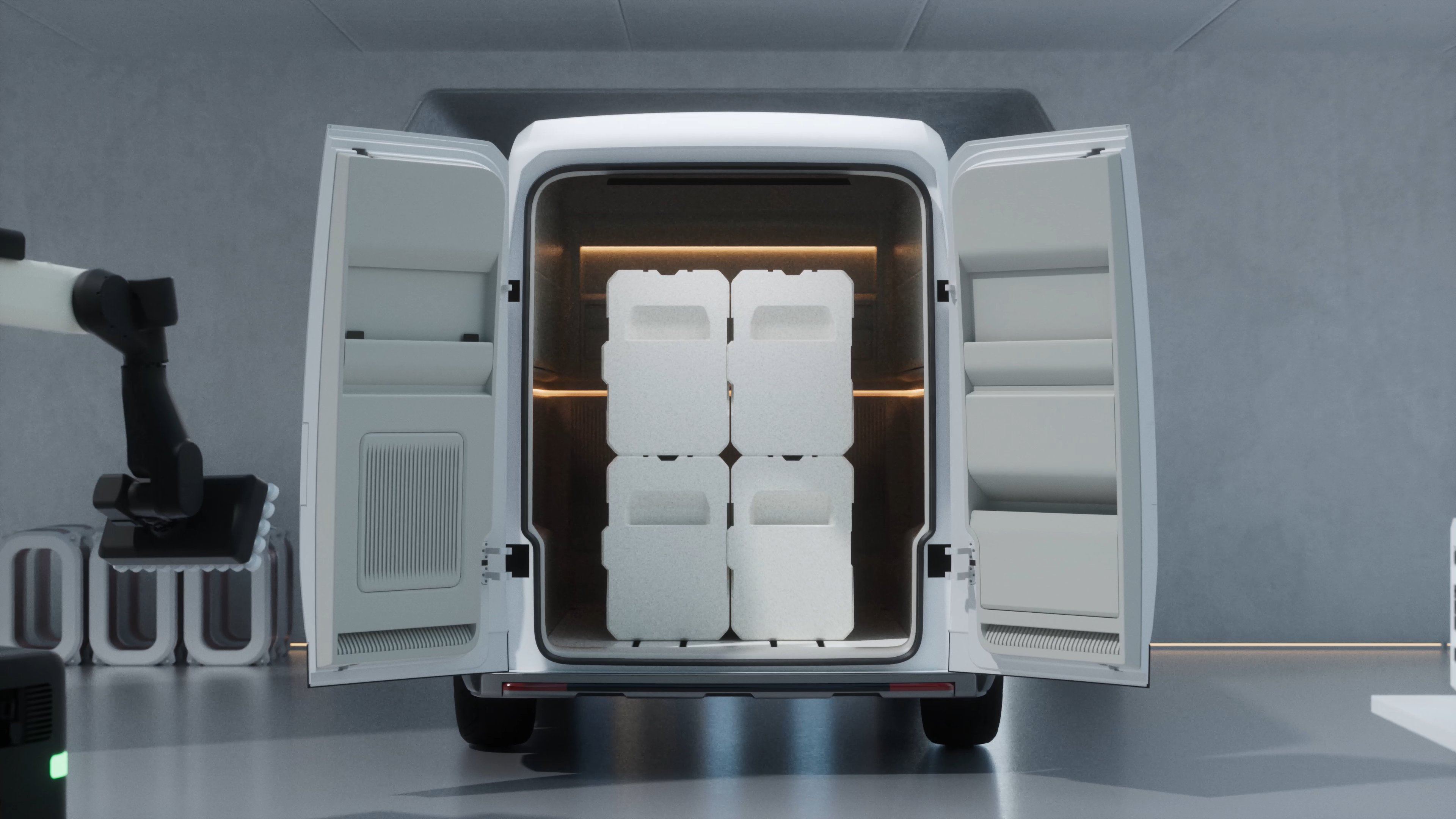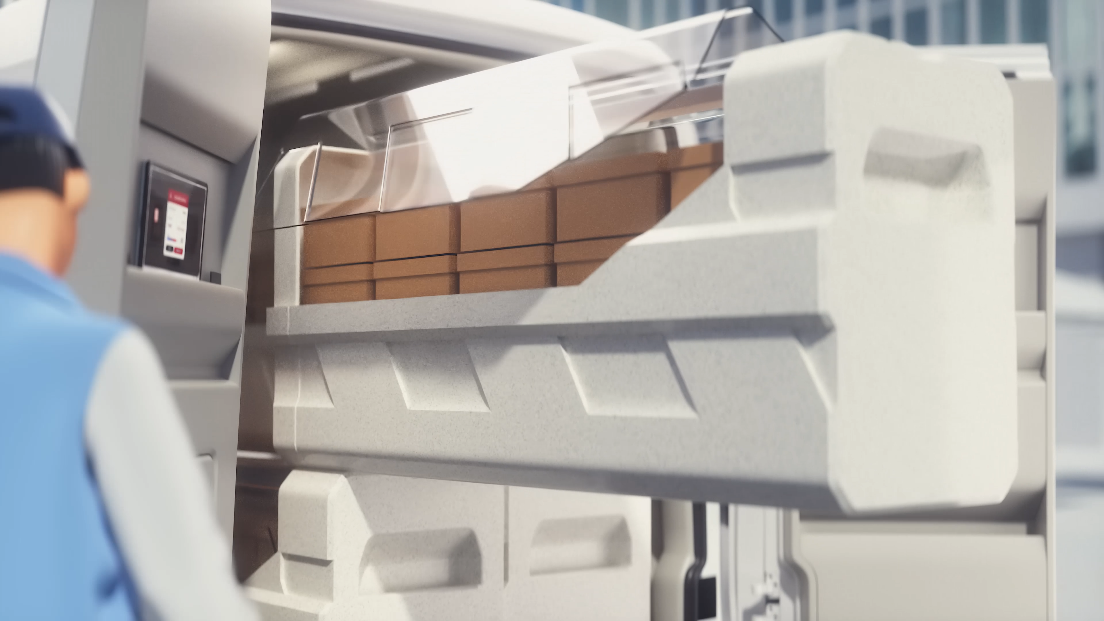 먼저 '캐비닛'은 물류 운송을 보조하기 위한 솔루션으로써, 크기/종류/배송 지역에 따라 분류된 상품을 규격화된 캐비닛에 탑재해 PBV 차량으로 운송하고, 차량에서 차량 간 물품 이동에 걸리는 시간을 캐비닛을 이용해 크게 단축할 것으로 예상되고 있다. 이와 함께 차량 관제 시스템을 통한 물류 자동화가 실현될 경우 화물 운송 과정에 있어 혁신적인 변화를 가져다줄 것으로 기대된다.