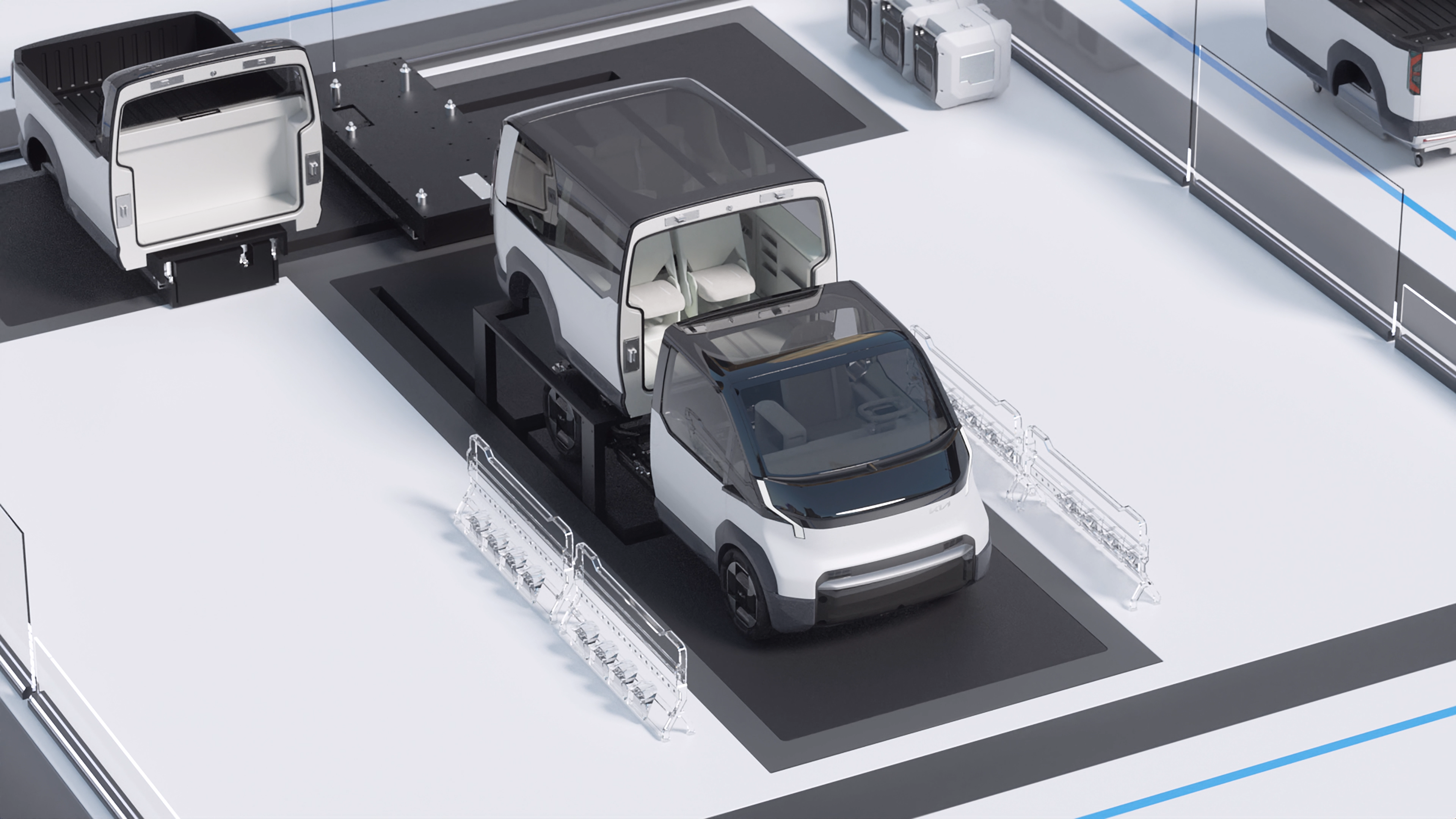 기아는 PBV 콘셉트 차량 외에도 PBV의 활용성을 더 높일 수 있는 신규 아이템도 적용, 공개했다.