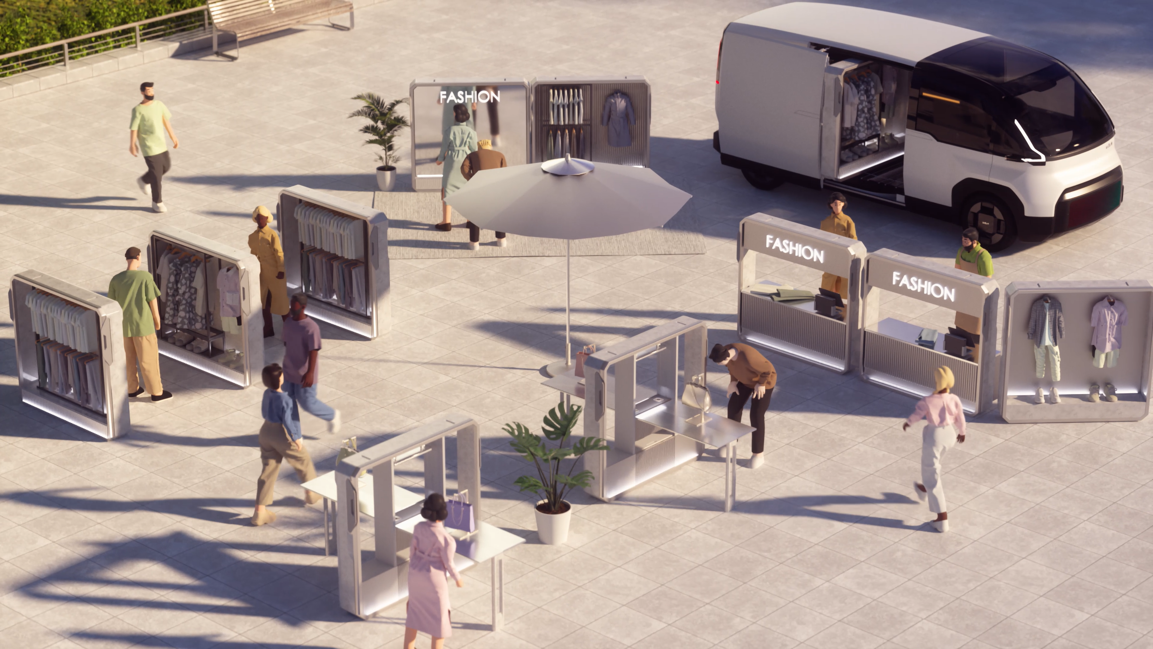 이어서 '프레임'은 PBV 차량에 탑재 가능한 이동형 서비스 플랫폼으로, 사용자가 쇼룸, 벤치 테이블, 조리기구, 스타일러, 엔터테인먼트 사양 등으로 활용 가능한 여러 종류의 프레임 중 원하는 것을 골라 차량에 적재 후 목적지에 도착해 꺼내서 사용하는 방식으로 야외 환경에서 카페나 매장, 팝업 스토어 등을 구성할 수 있다.