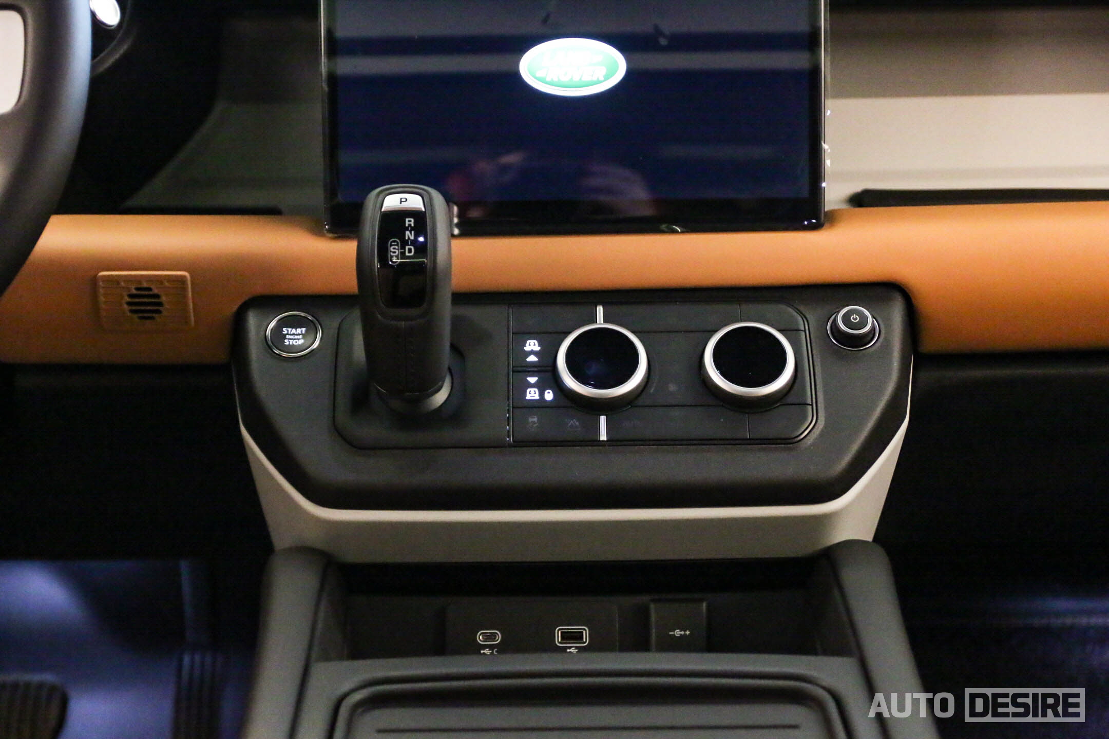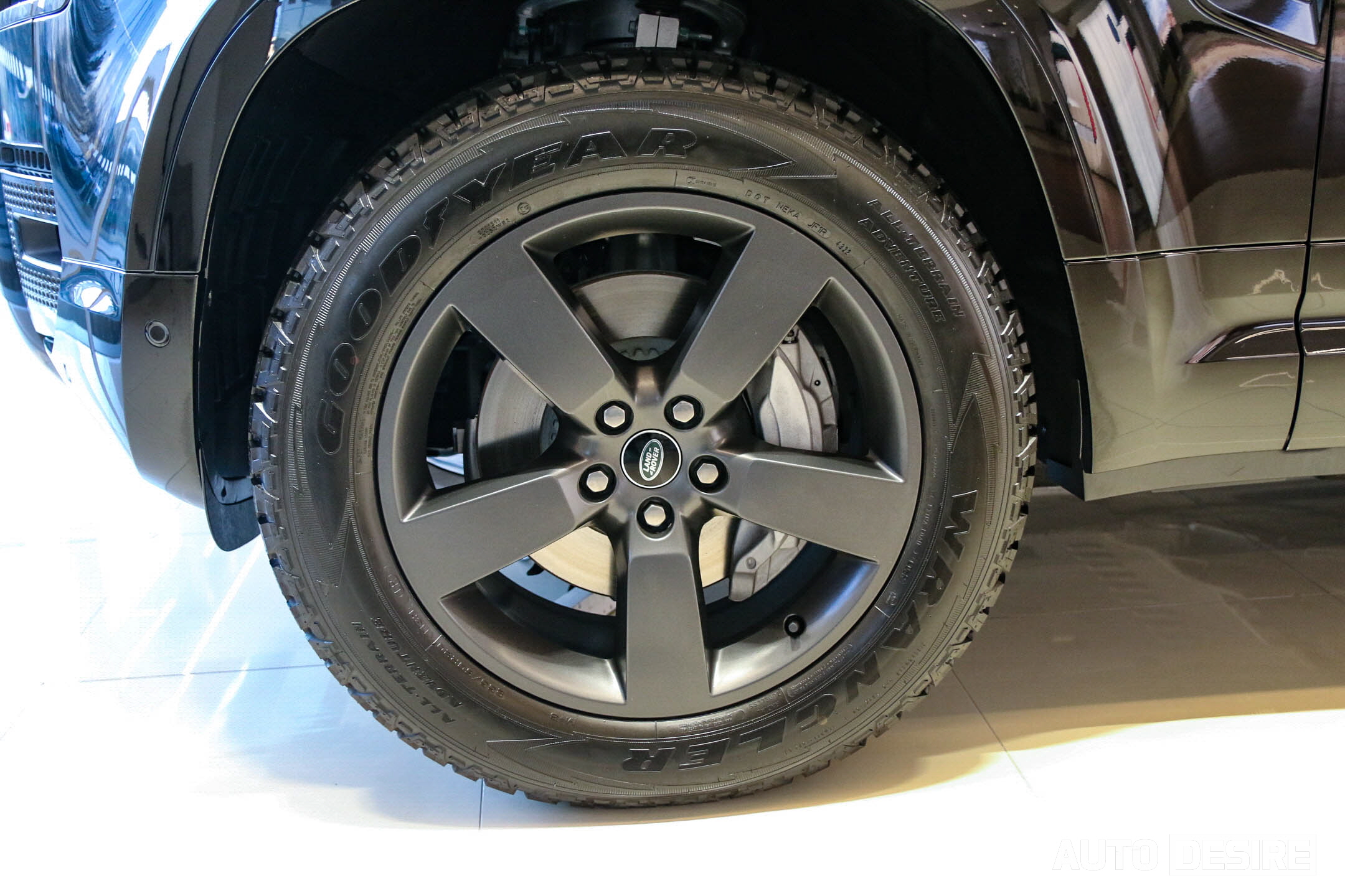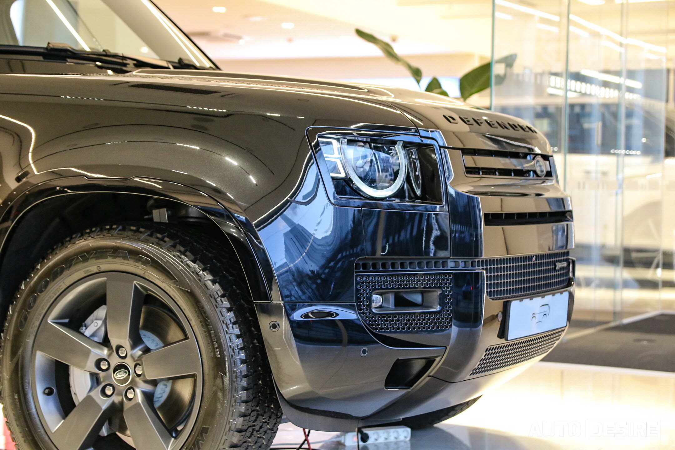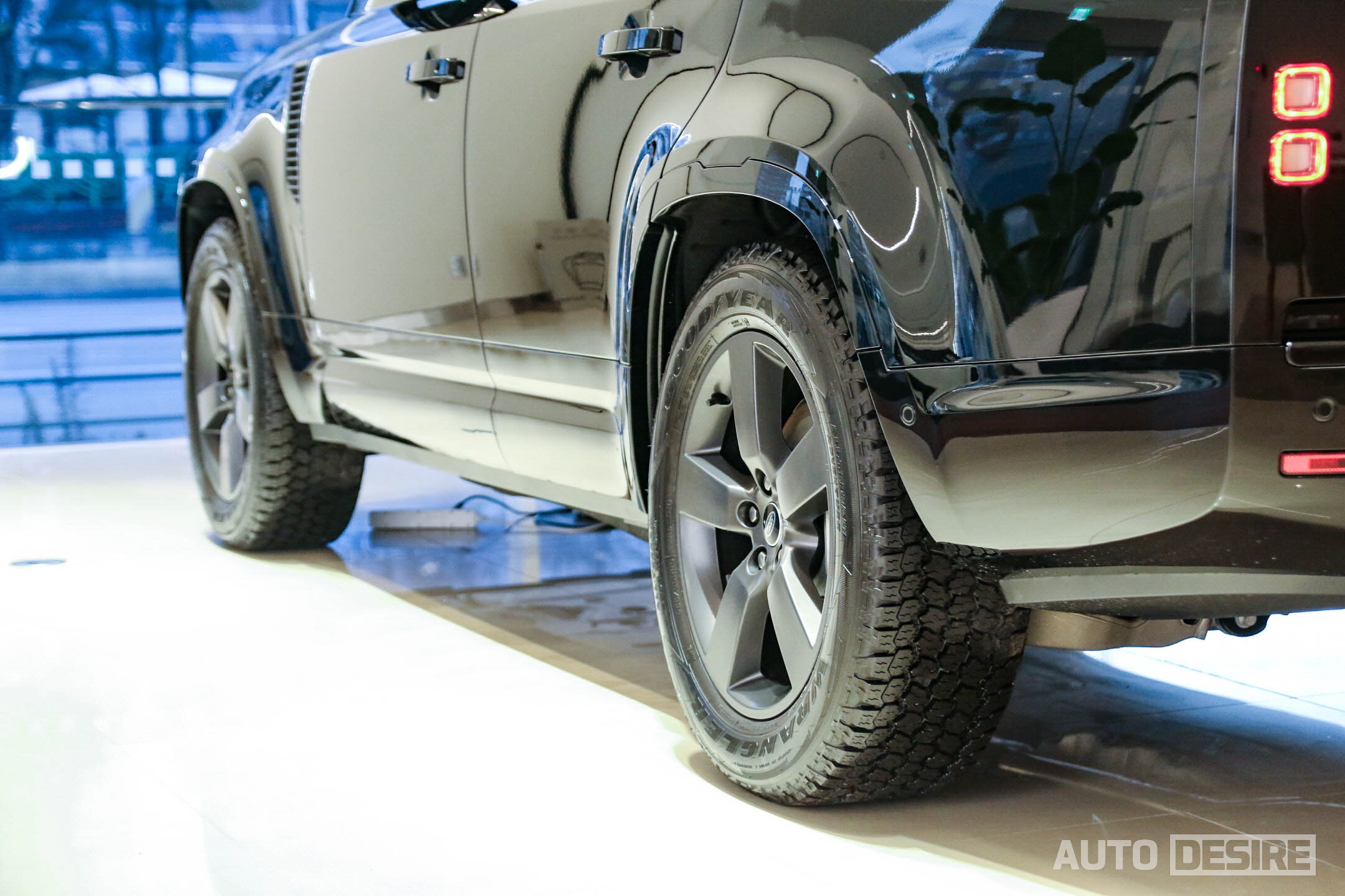 차체 후면에서도 다른 디펜더 라인업과 동일하게 여러 개의 사각형으로 조합된 LED 리어 콤비네이션 램프가 적용되고, 확장 블랙 익스테리어 팩 적용으로 스페어타이어 커버와 하단 스키드 팬, 견인 고리 부분까지 모두 유광 블랙 액센트로 마감된 모습이다.