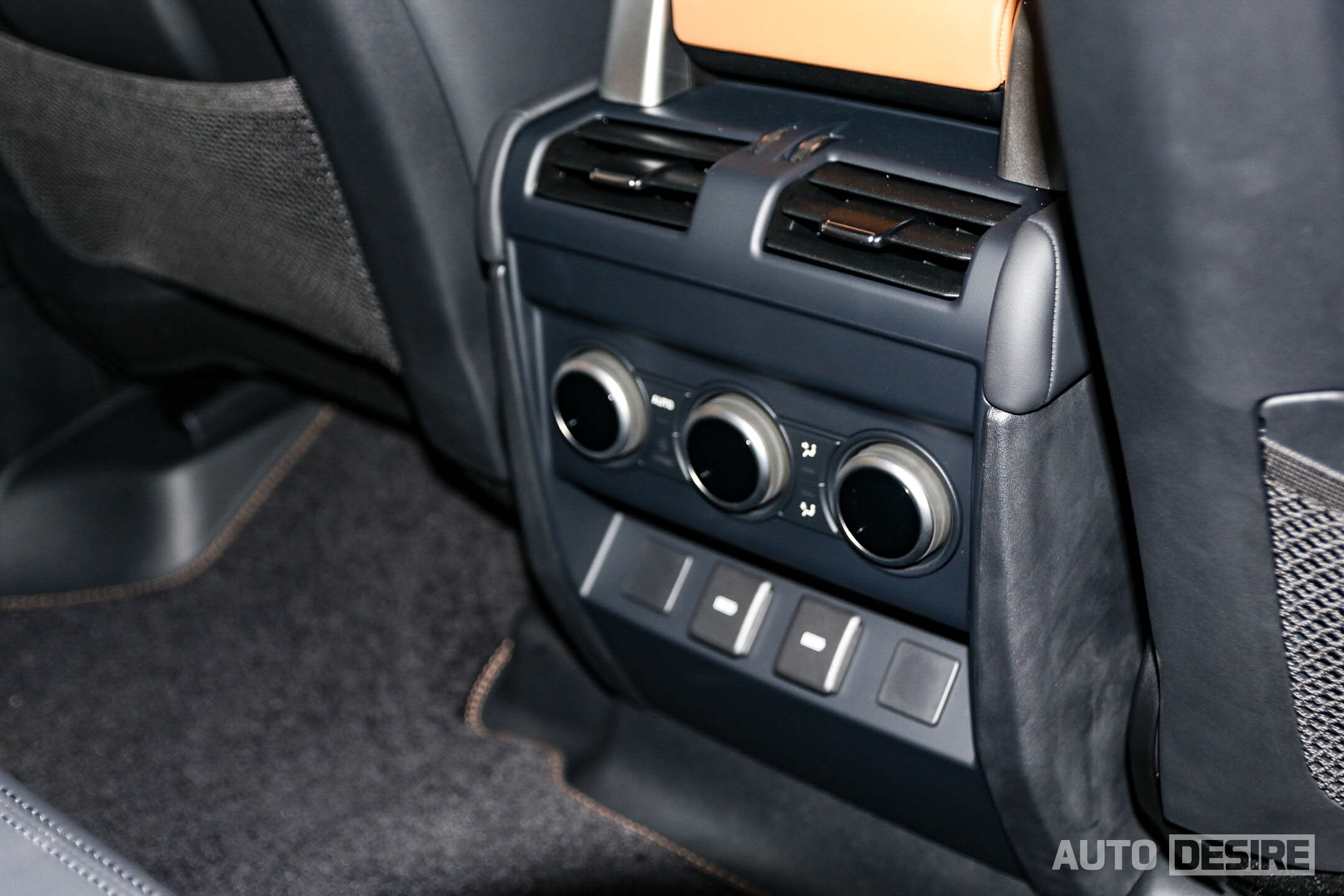 실내에서는 듀오톤 윈저 가죽 시트와 도어 트림, 크래시 패드, 센터 암레스트 등에 가죽 마감이 적용되고, 전시차는 브라운 계열인 빈티지 탠/에보니 투톤 인테리어가 적용되었다.