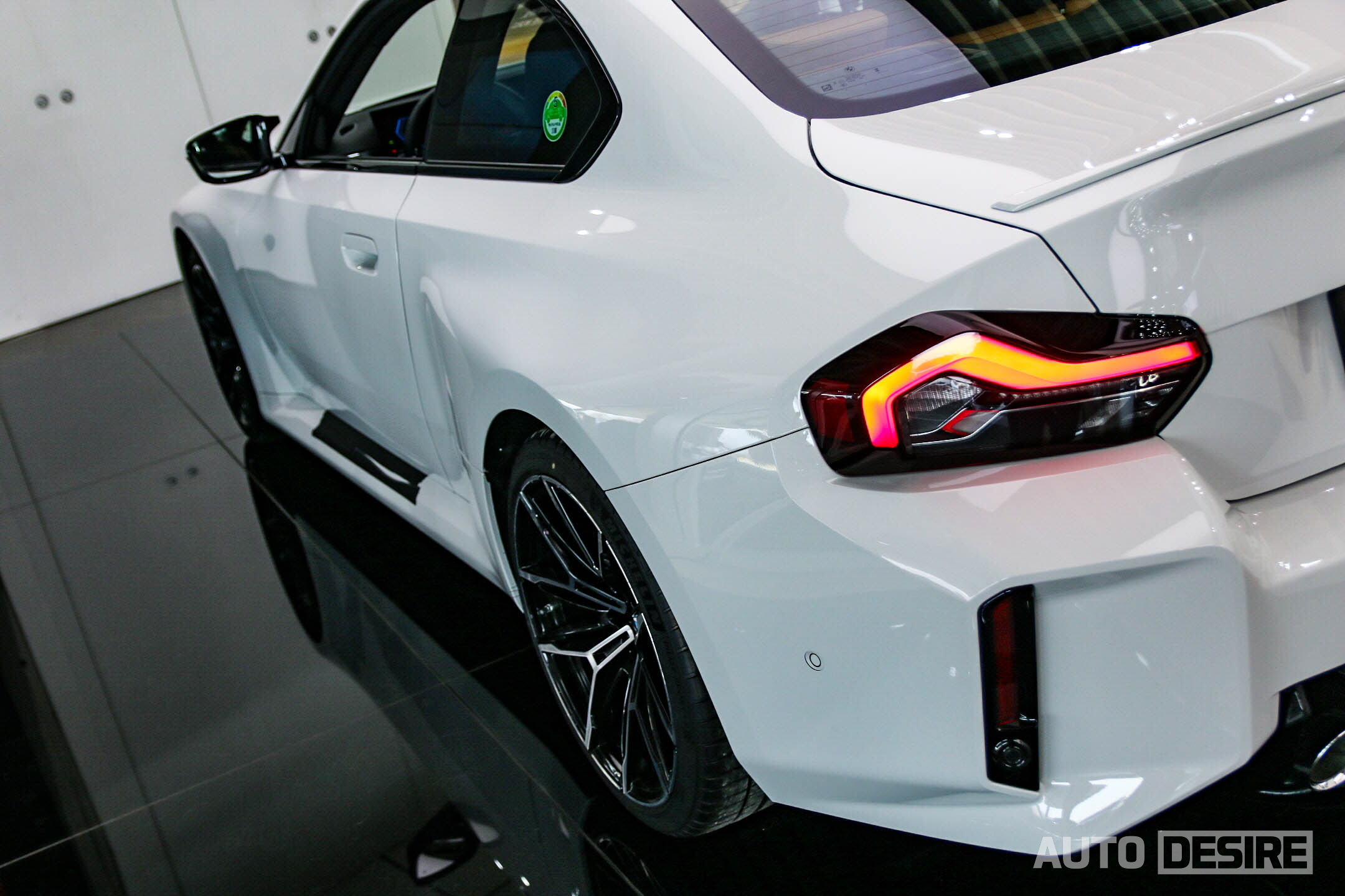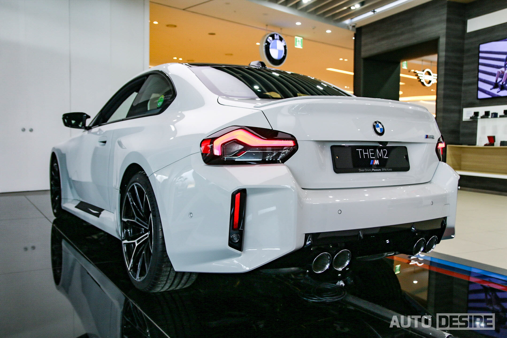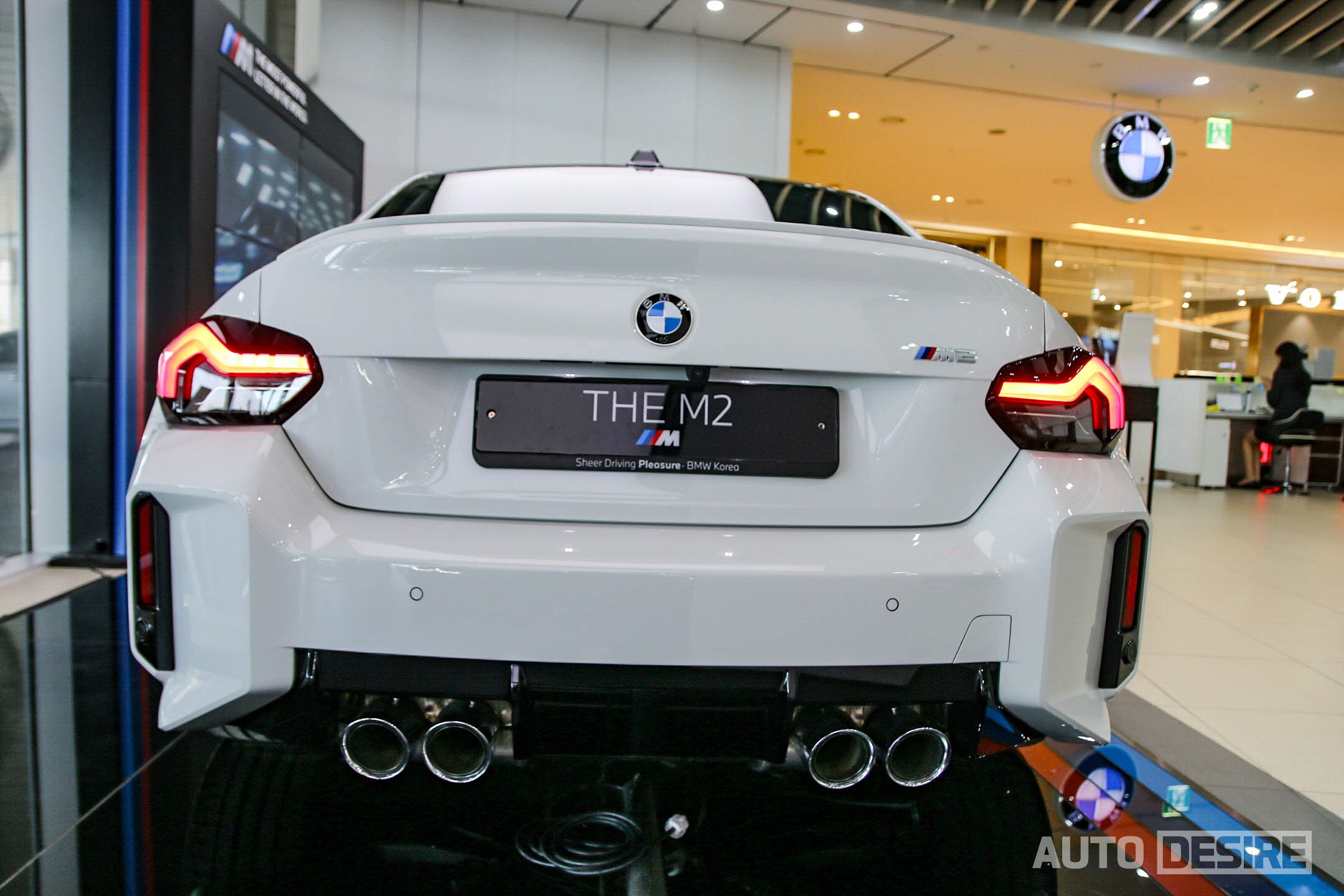 후면부 디자인 역시 기존 M2와 비교 시 호불호가 갈리는 평가를 받고 있지만, 헤드램프의 주간주행등 라인을 뒤집어 놓은 듯한 리어 콤비네이션 램프 그래픽과 함께 엣지를 살려 부풀려 놓은 범퍼 디자인과 수직형 리플렉터, 쿼드 팁 머플러와 리어 디퓨저, 높게 솟은 트렁크 리드까지 'M'배지를 단 차량인 만큼 고성능 감성을 확실하게 전하고 있다.