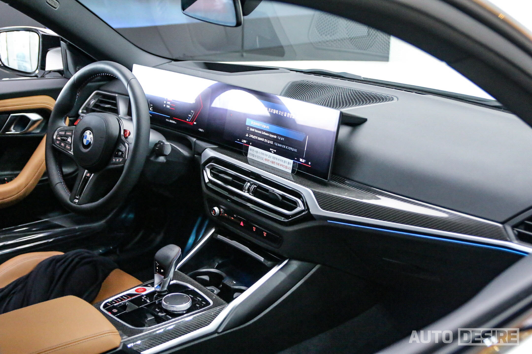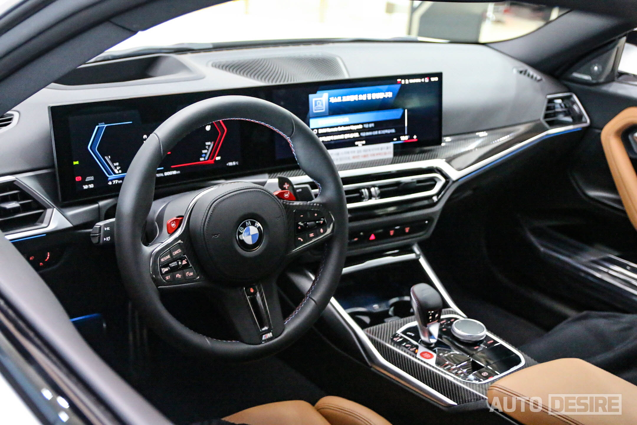 M2 로고가 헤드레스트 부분에 더해진 M 스포츠 시트와 함께 M 컬러 스티치와 카본 마감, 빨간 M 모드 버튼이 더해진 M 스티어링 휠, M 전용 전자식 기어 노브, 크래시 패드와 센터 콘솔에 적용된 카본 내장재 마감을 비롯, 12.3인치 계기판과 14.9인치 컨트롤 디스플레이가 결합된 BMW 커브드 디스플레이에도 M 전용 디스플레이가 포함된 BMW OS8 인포테인먼트 시스템이 적용된다. 물론 무선 애플 카플레이와 안드로이드 오토도 지원한다.