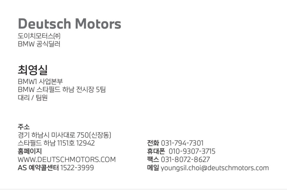 BMW 공식딜러 도이치모터스 스타필드 하남전시장 최영실 대리 문의