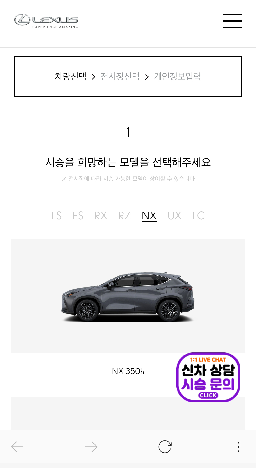 엘앤티 렉서스 안양 시승센터 시승 신청은, 온라인 홈페이지에 접속해 시승을 희망하는 차량을 먼저 선택! 이번에 시승을 진행한 NX 350h를 선택해 줬고, 이어지는 창에서 안양 시승센터에서 비대면 시승을 선택하고 원하는 시승 날짜와 필수 고객 정보를 입력하면 시승 신청이 완료된다. 신청 후 곧바로 예약 확정 안내 문자, 카카오톡도 발송되어서 선택한 예약 날짜, 시간에 맞게 엘앤티 렉서스 안양 시승센터에 방문해서 시승을 바로 진행하면 된다.
