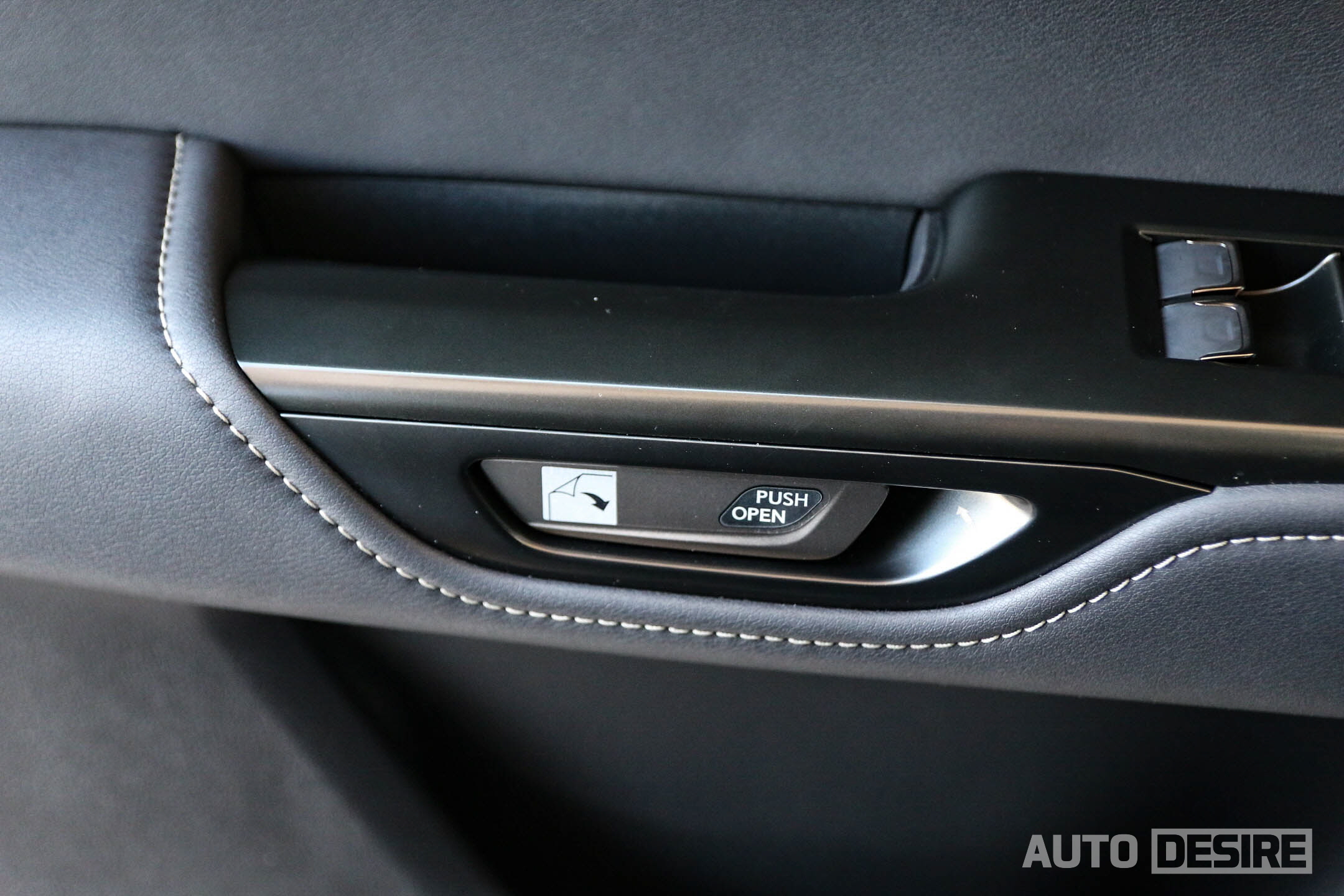 또 NX 350h의 독특하면서도 편리한 부분으로, 도어 손잡이가 전동식인 ‘이-래치(e-Latch)’로 적용되어서 손잡이를 당기는 것이 아닌, 버튼을 누르고 문을 밀고 당기는 방식으로 더 빠르고 간편하게 하차가 가능하다.
